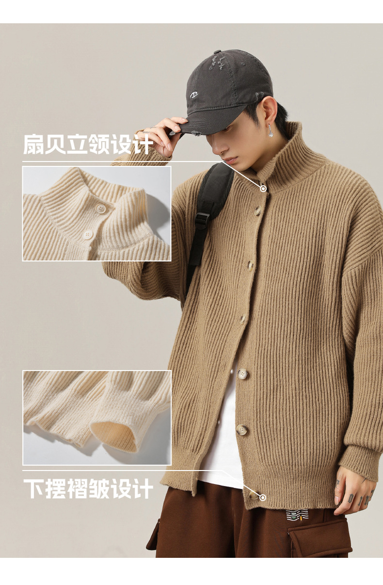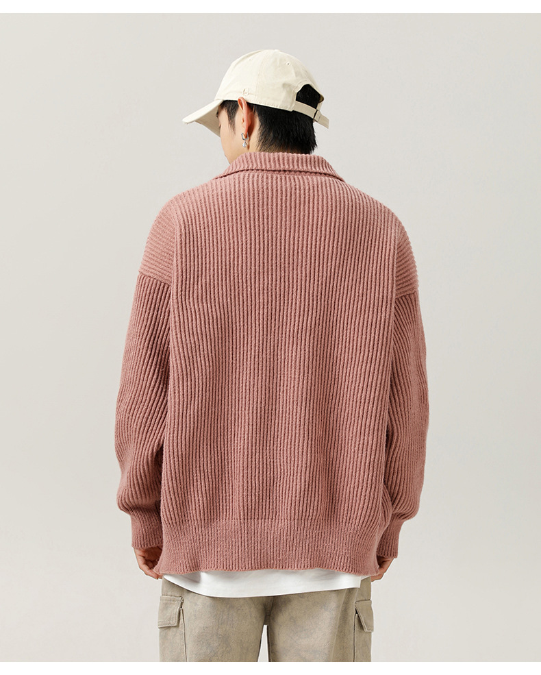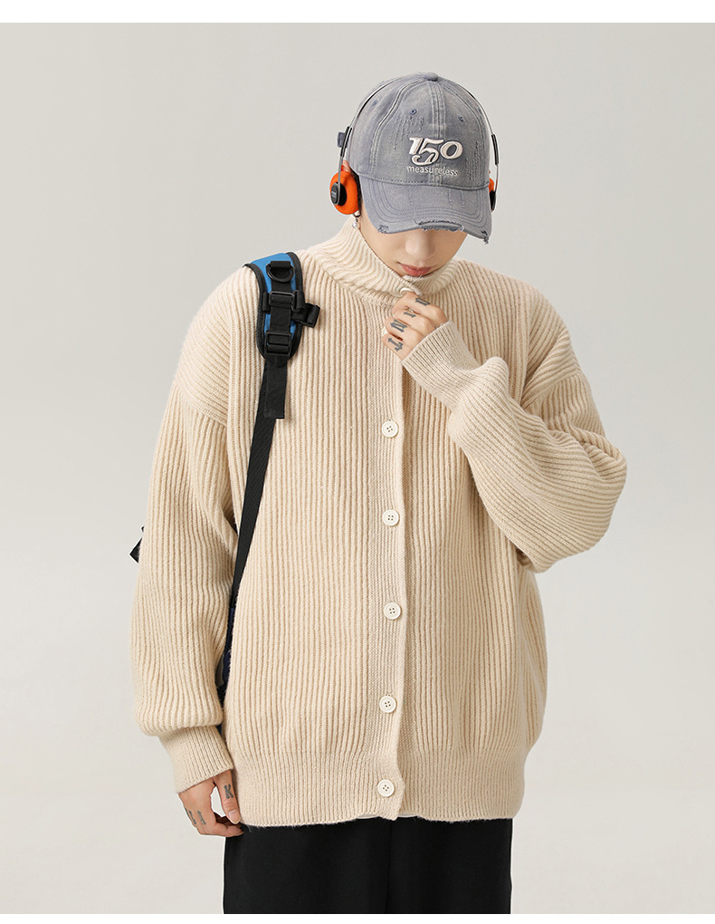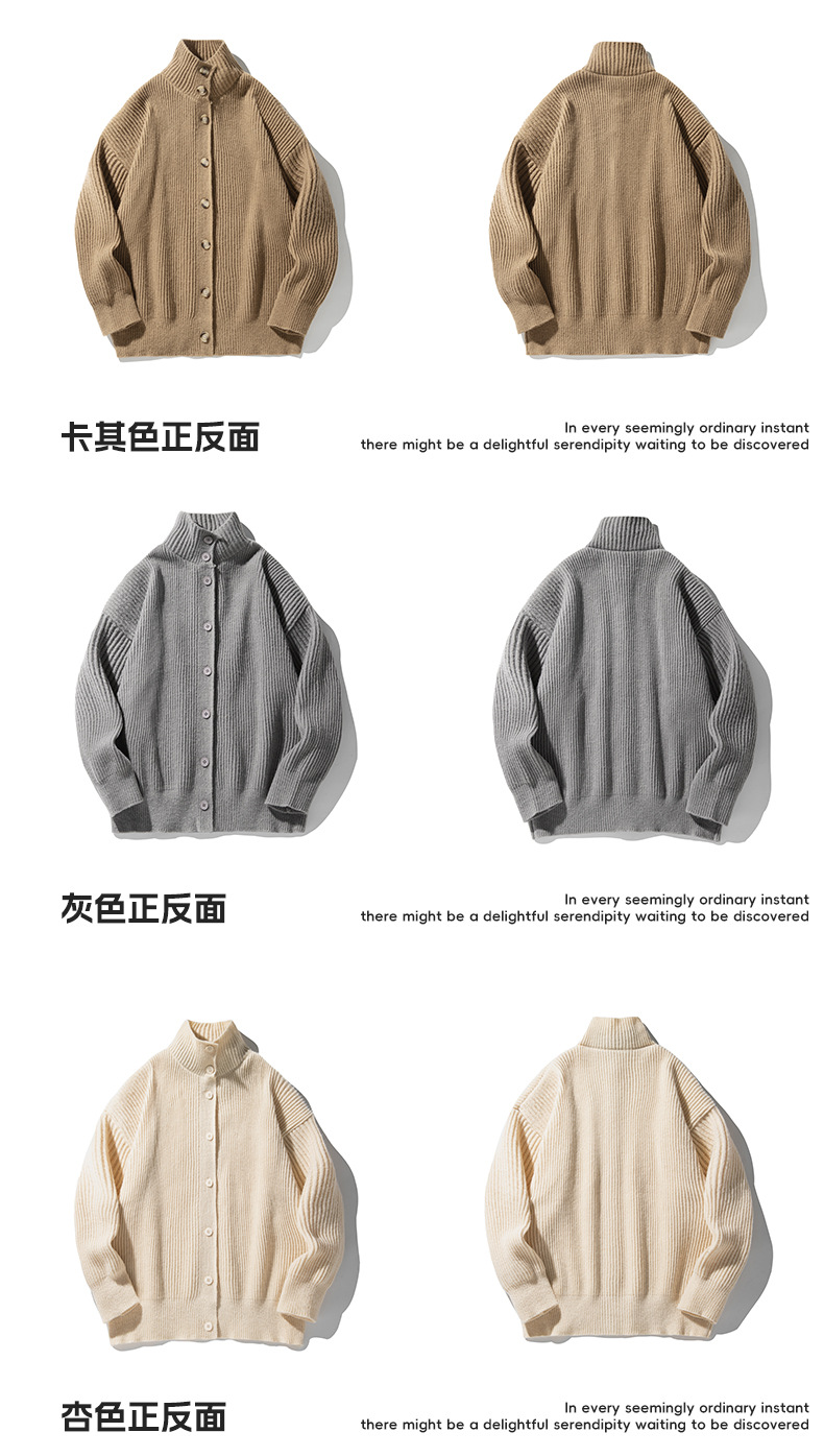 Lazy Style Japanese Style Turtleneck Cardigan Sweater Men's Autumn and Winter New High-grade Solid Color Sweater Loose Collar Jacket