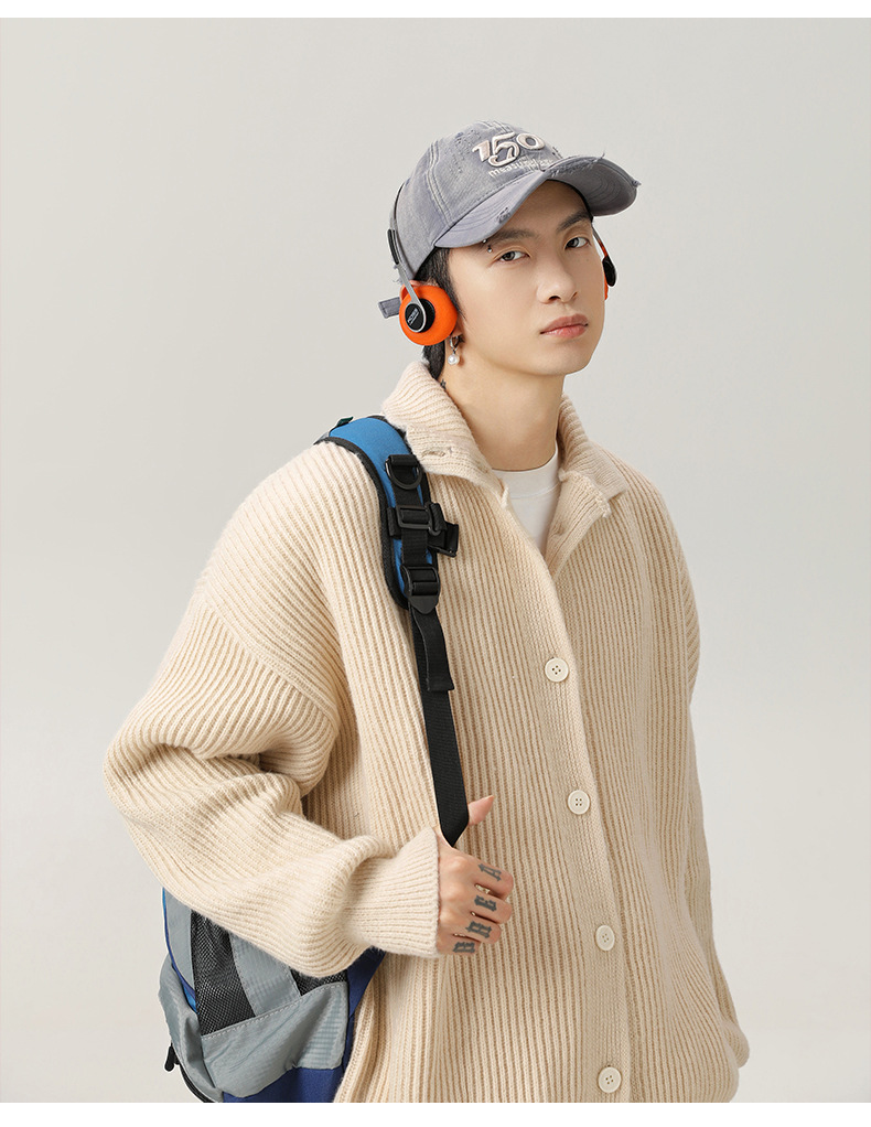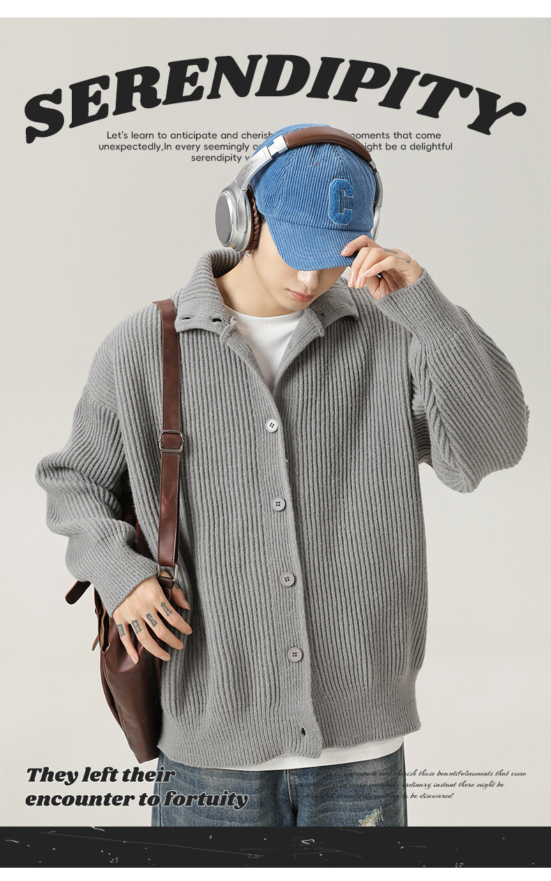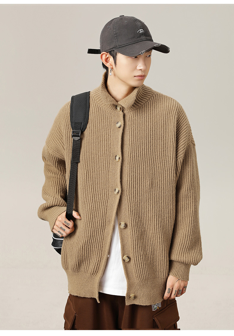 Lazy Style Japanese Style Turtleneck Cardigan Sweater Men's Autumn and Winter New High-grade Solid Color Sweater Loose Collar Jacket