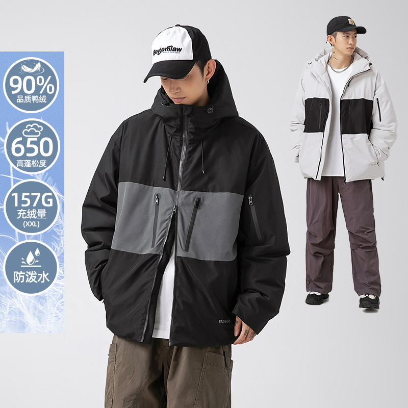 Japanese Outdoor Water-repellent Down Jacket 2024 Winter New Contrast Color Stitching Loose Hooded Jacket Jacket Q