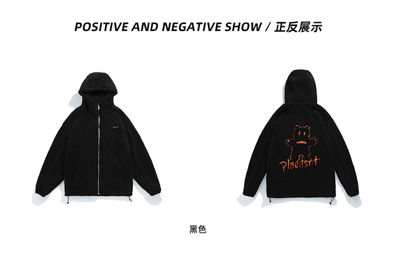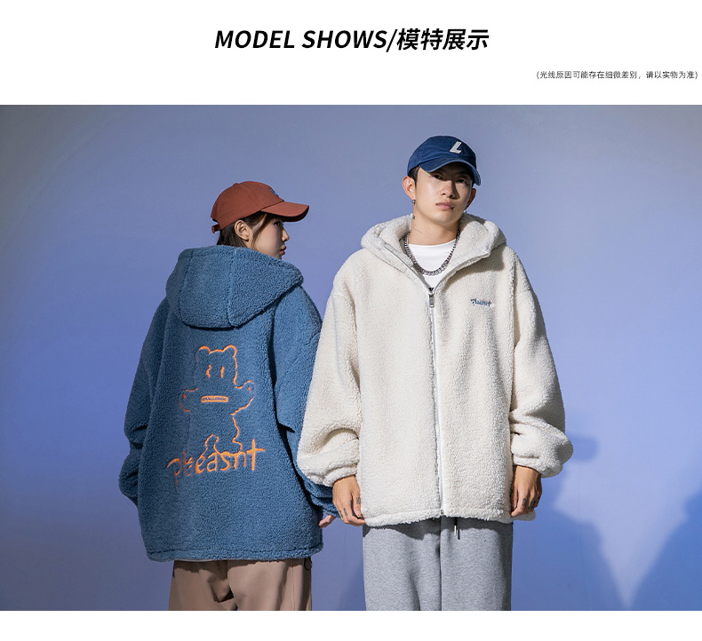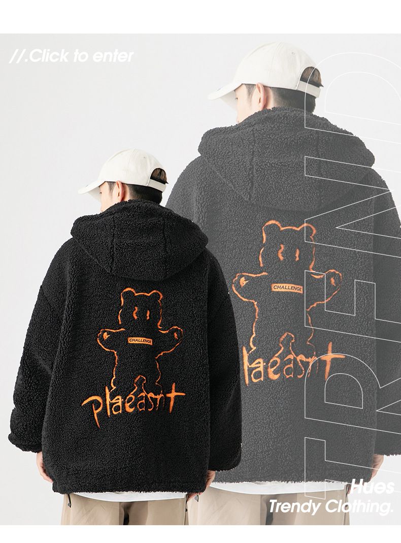 Han Lu Japanese Men's Bear Embroidered Cotton-padded Jacket Men's 2024 Winter New Fashion Brand Couple Lamb Fleece Jacket Cotton-padded Clothes Q