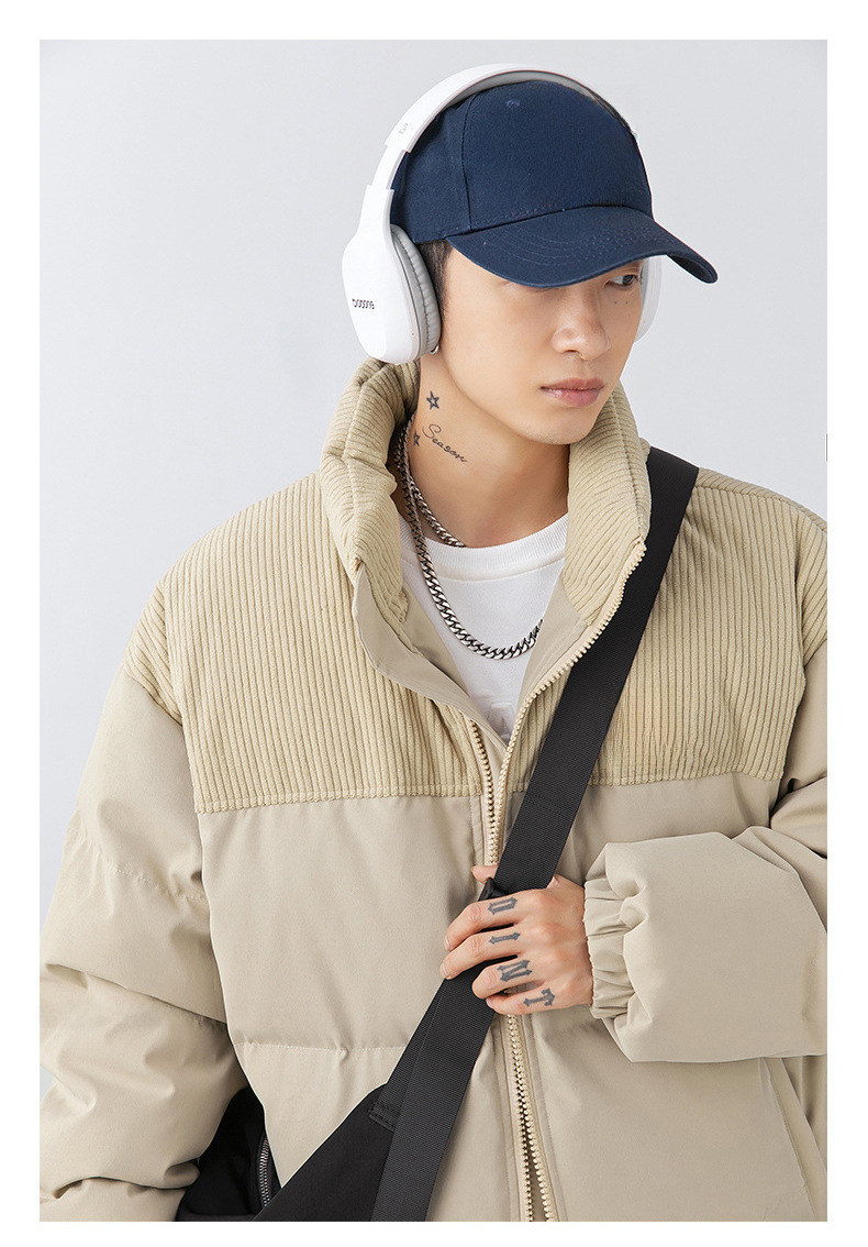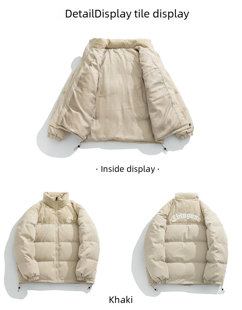 Couple's Winter Thickened Cotton-padded Jacket Men's Winter New Letter Embroidery Trendy Brand Loose Corduroy Stitching Cotton-padded Clothes