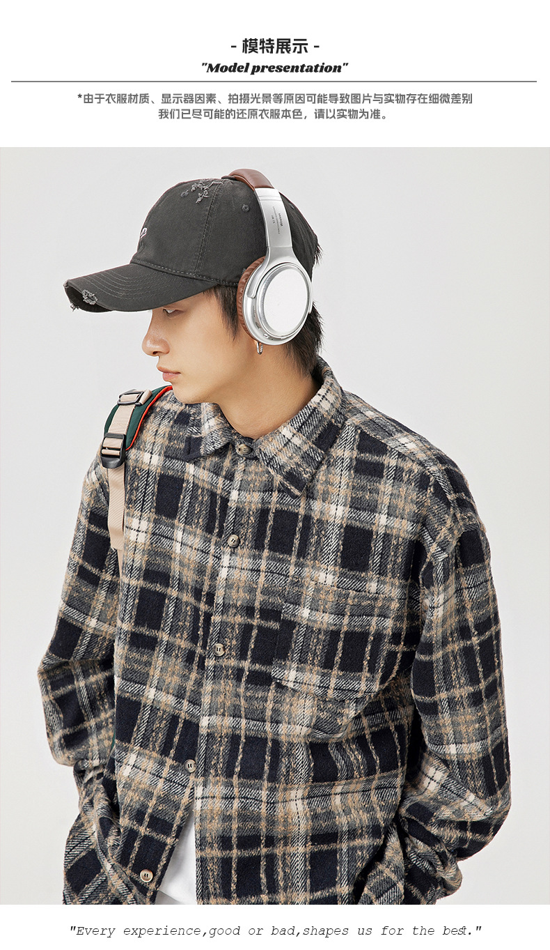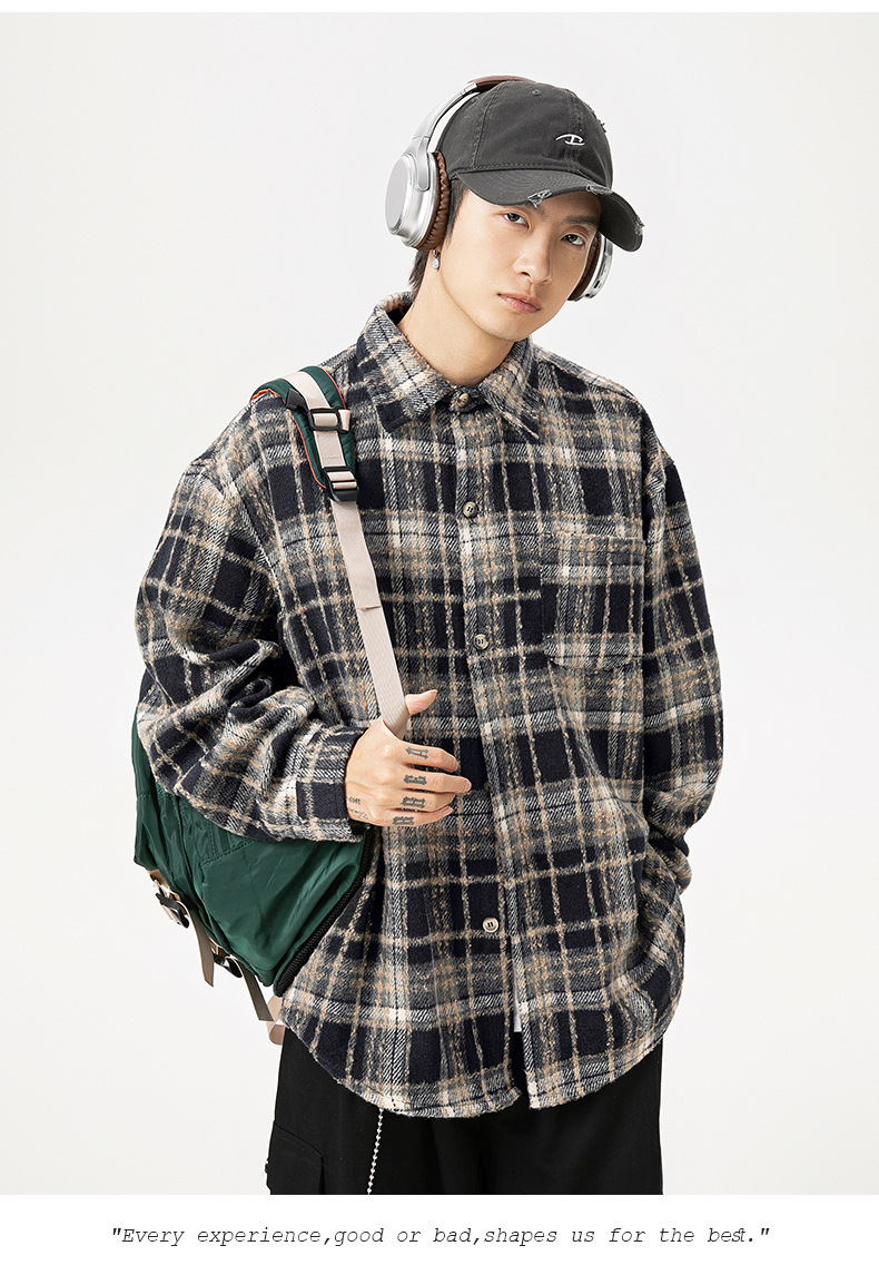 American Style Retro Plaid Long-sleeved Shirt Men's Autumn New Lapel Pocket Shirt Texturized Loose Couple's Coat Women