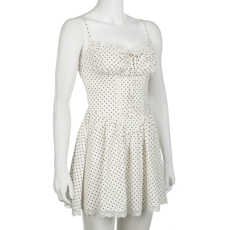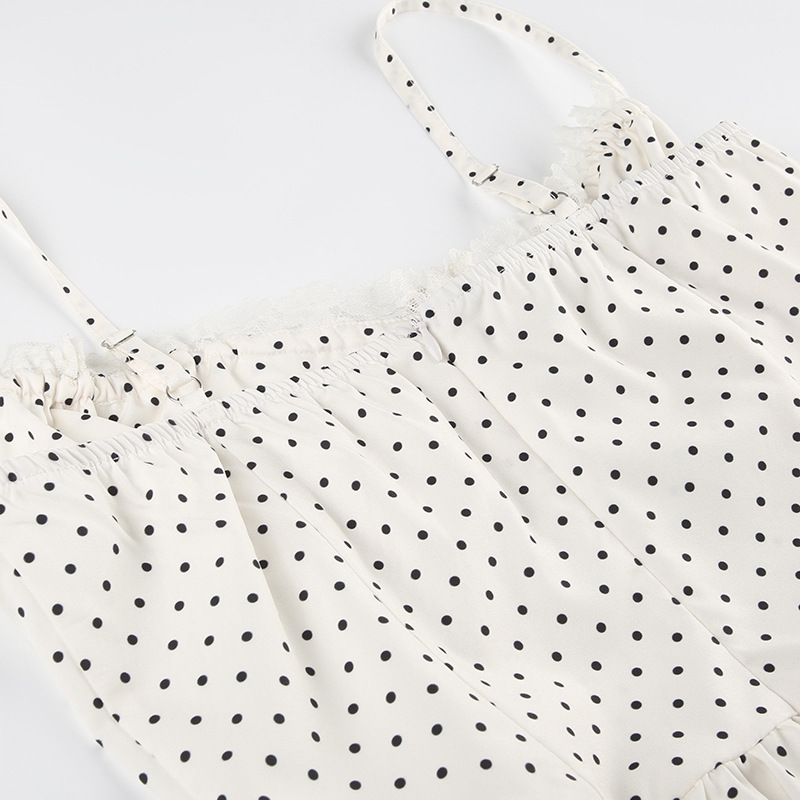 Summer European and American Polo Dot Printed Lace Lace Court French Style Chest Wrap Sling Waist A- line Sling dress Women