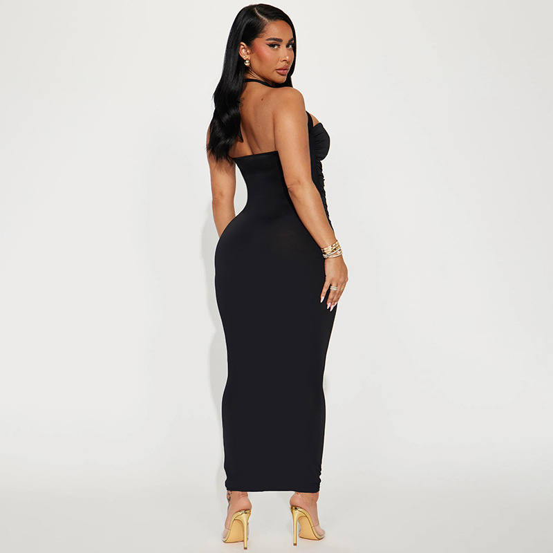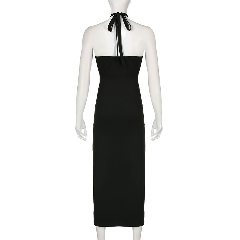 Tight Stitching Contrast Color Hanging Neck Sleeveless Hollow Wrap Chest Tight Hip Sexy Hot Girl Solid Color dress Long Dress for Women