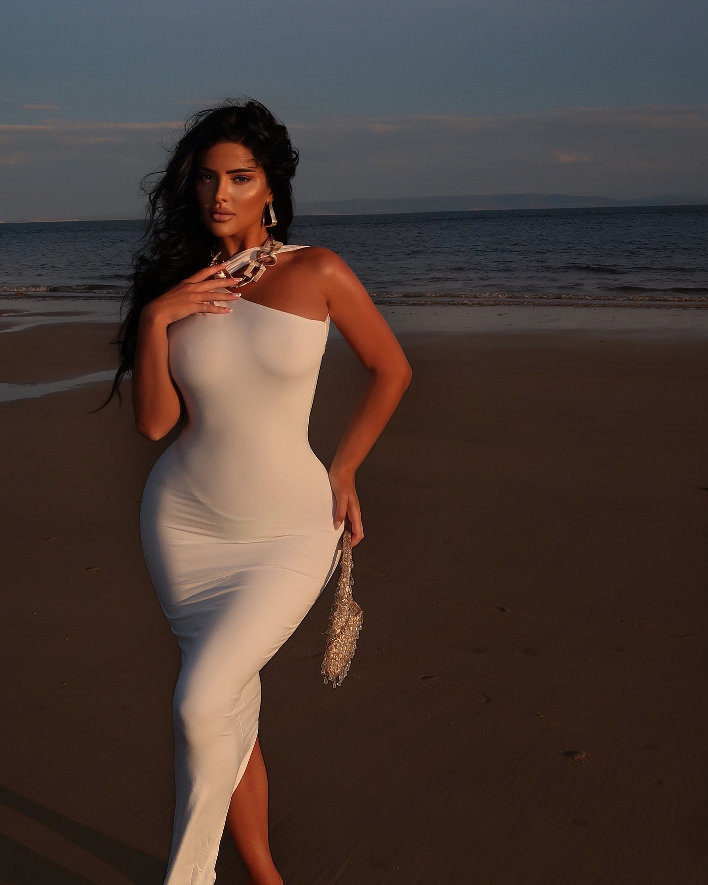 European and American Solid Color Ring Hollow Neck Sleeveless Single Shoulder Backless Slim-Fit Split Sexy Features dress Long Dress for Women