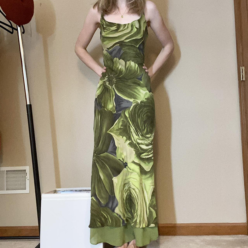 Mesh Double Layer Characteristic Rose Print Square Collar Sling Slim-fit Elegant Holiday Style Sexy dress Dress