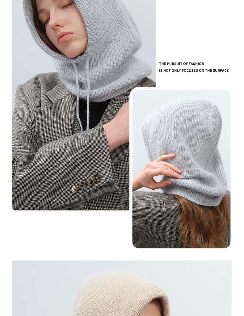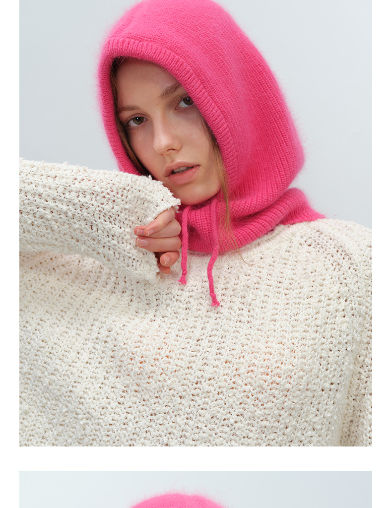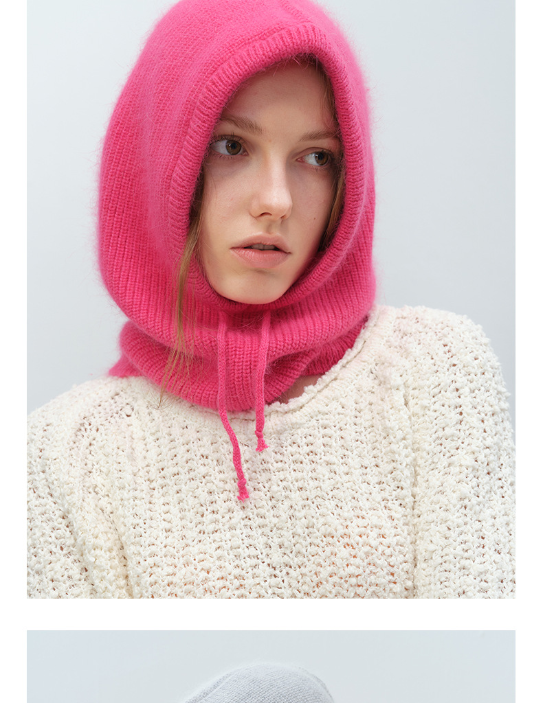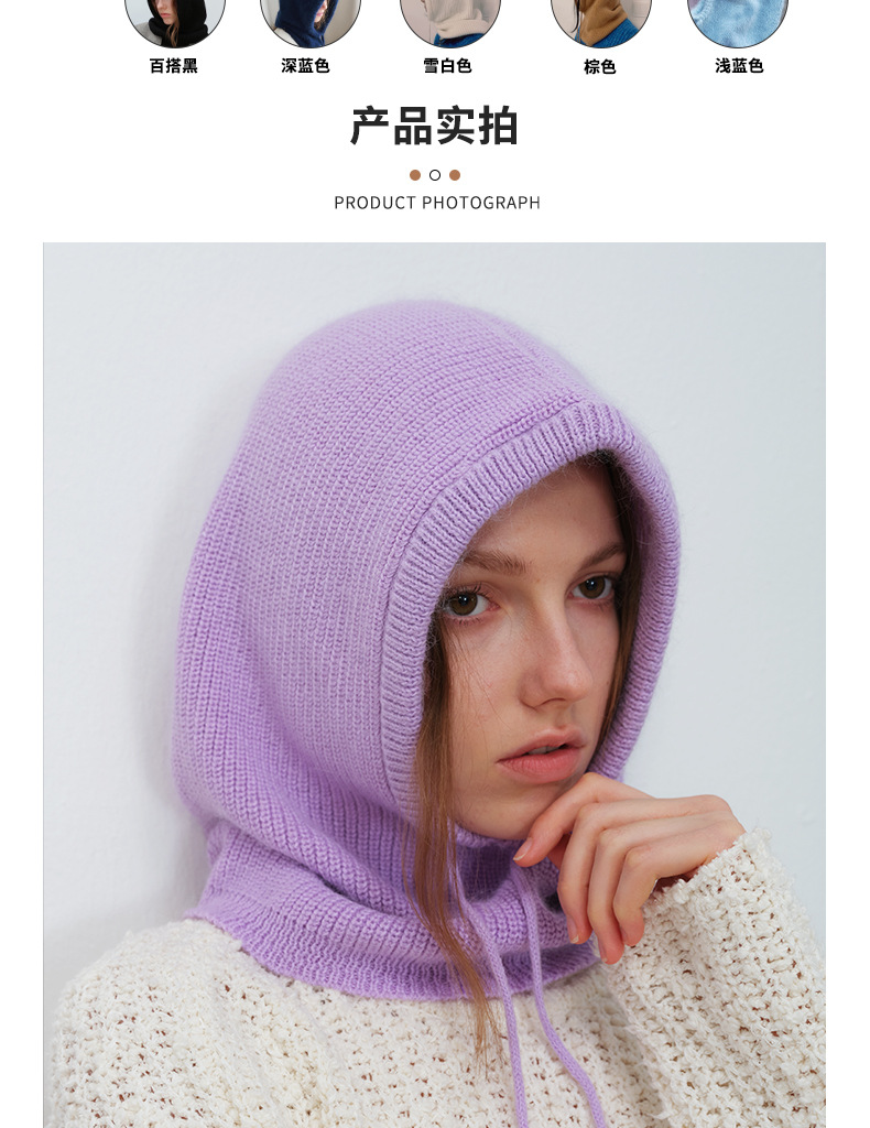 Japanese, Korean, European and American Ins Style Warm Simple All-match Fashionable Men and Women Solid Color Rabbit Hair Drawstring Balaclava Trendy
