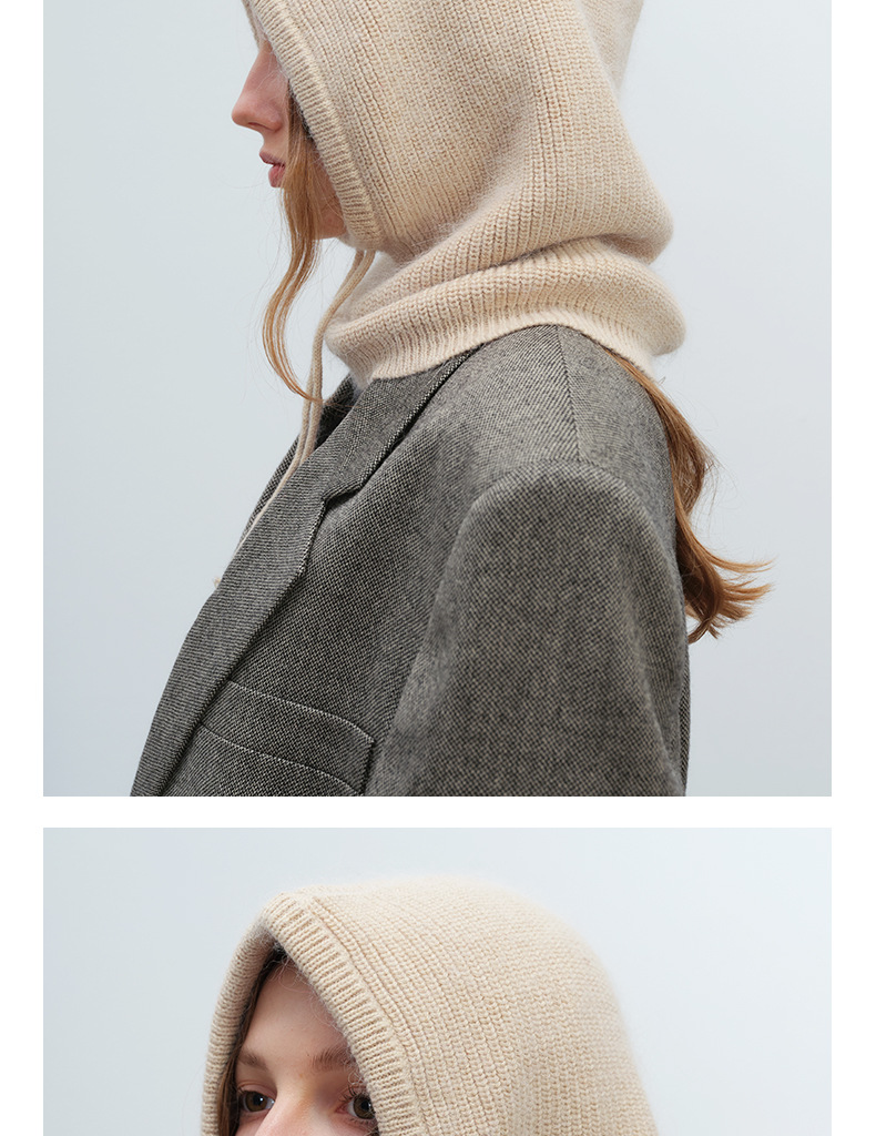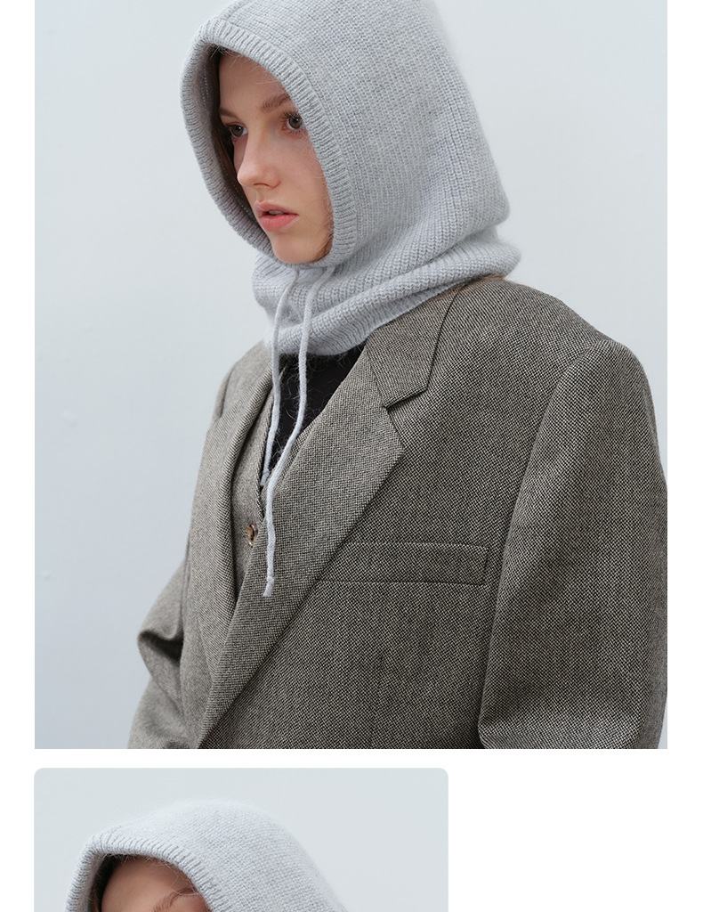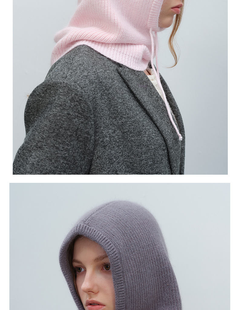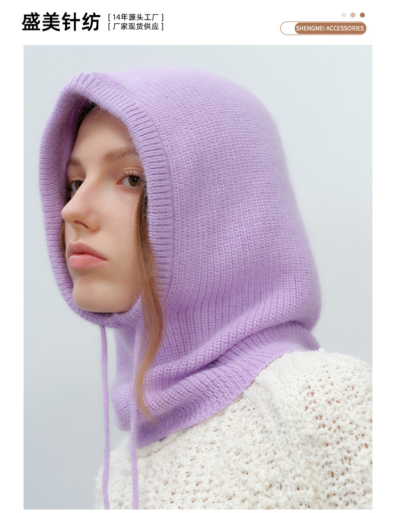 Japanese, Korean, European and American Ins Style Warm Simple All-match Fashionable Men and Women Solid Color Rabbit Hair Drawstring Balaclava Trendy