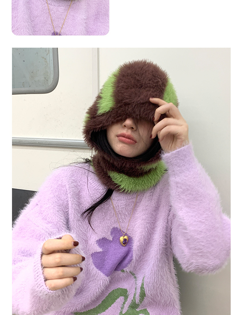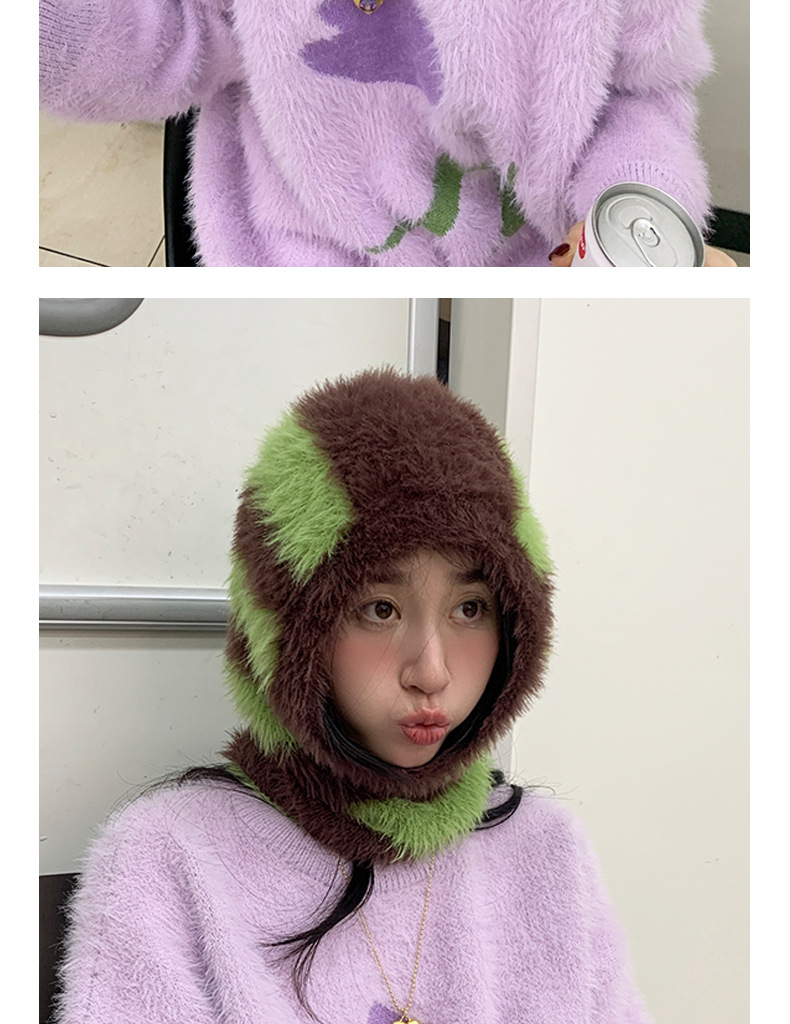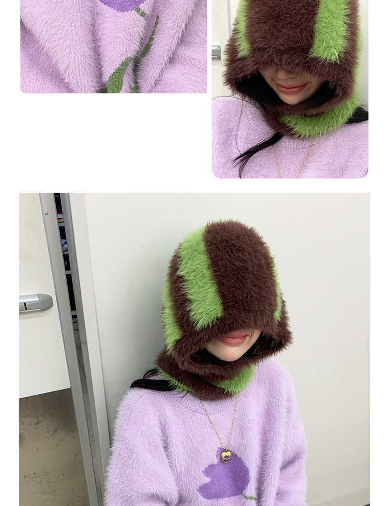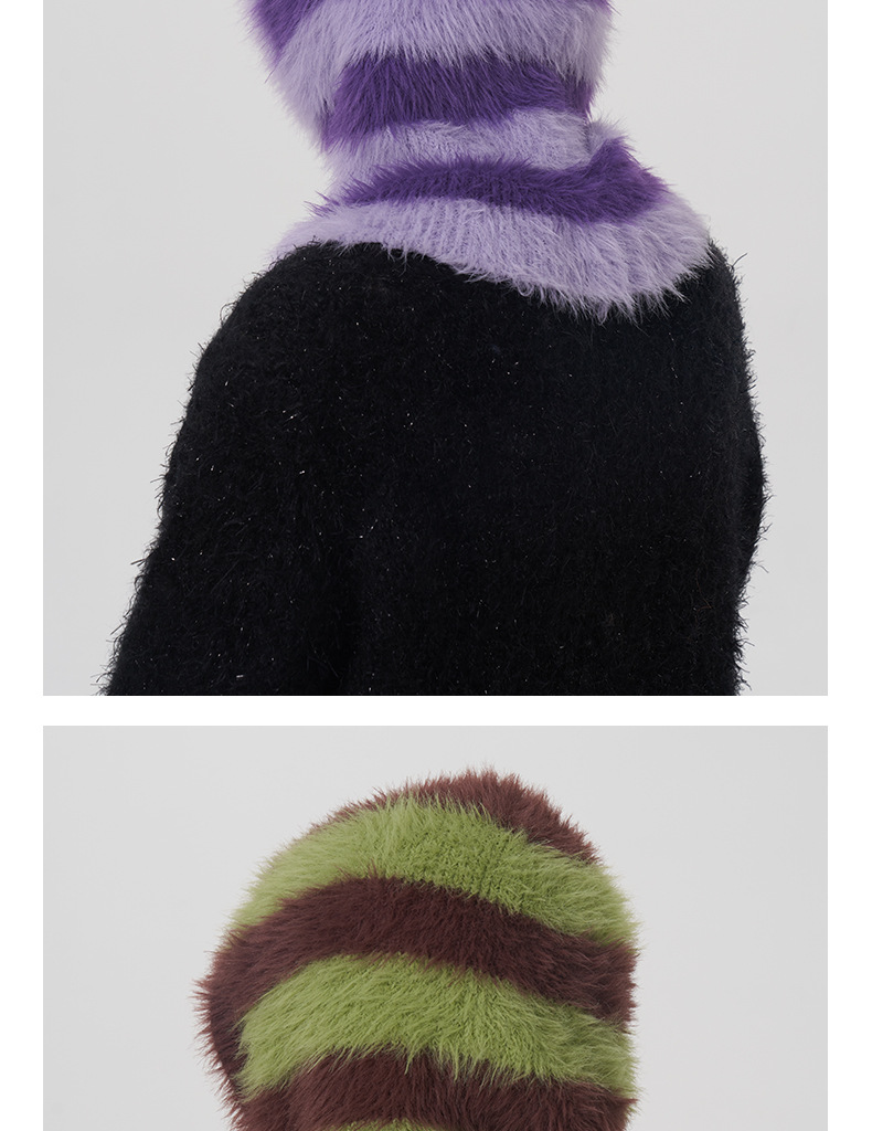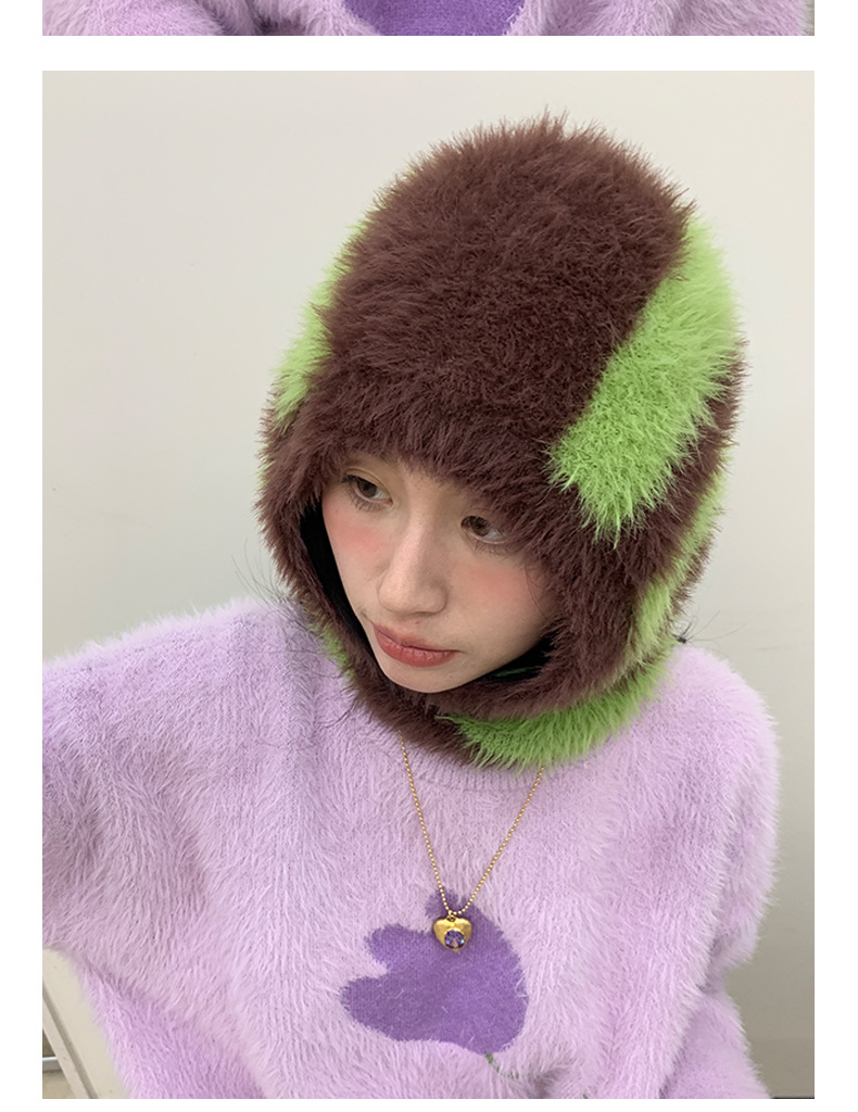Niche Designer Korean High-grade Striped Imitation Mink Hair Balaclava Hat Personalized Pullover Knitted Wool Hat for Women