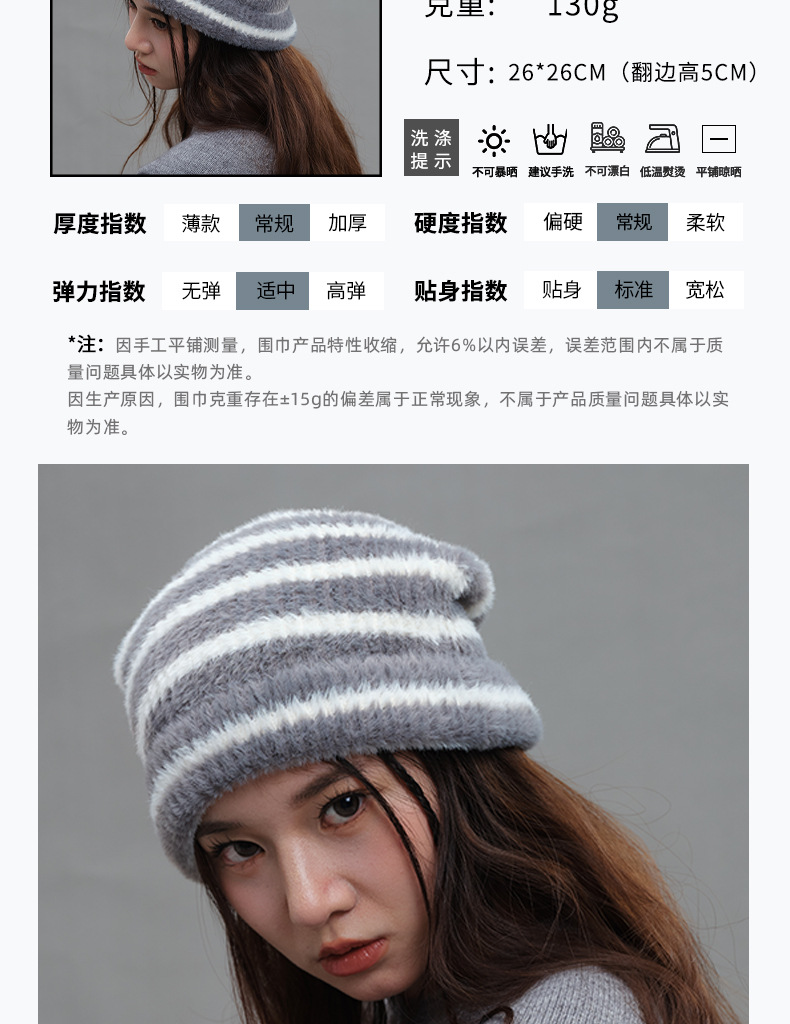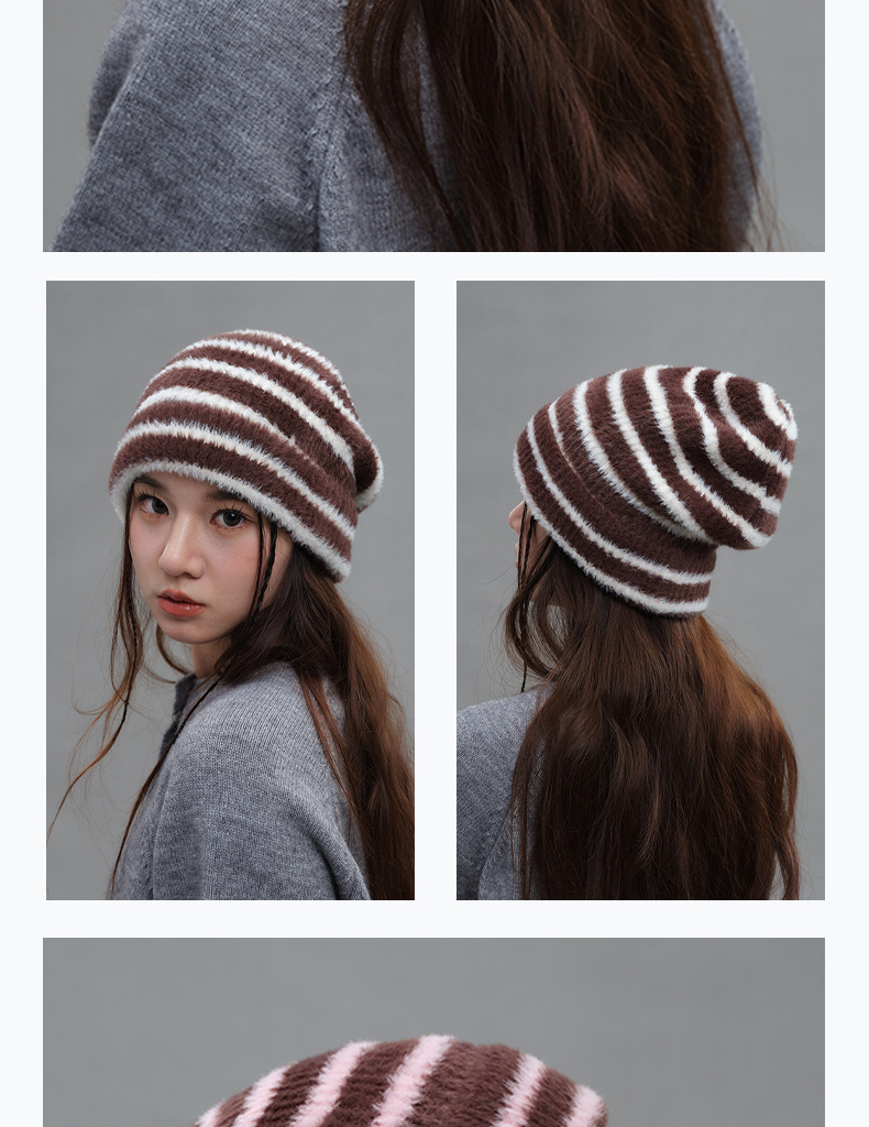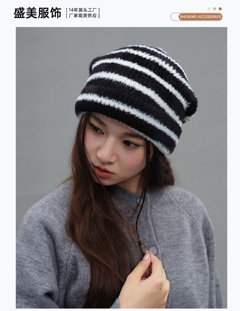 Japanese and Korean Fashion Retro Striped Warm Ear Protection Face Small Autumn and Winter Knitted Cold Hat for Men and Women Same Couple Wool Hat