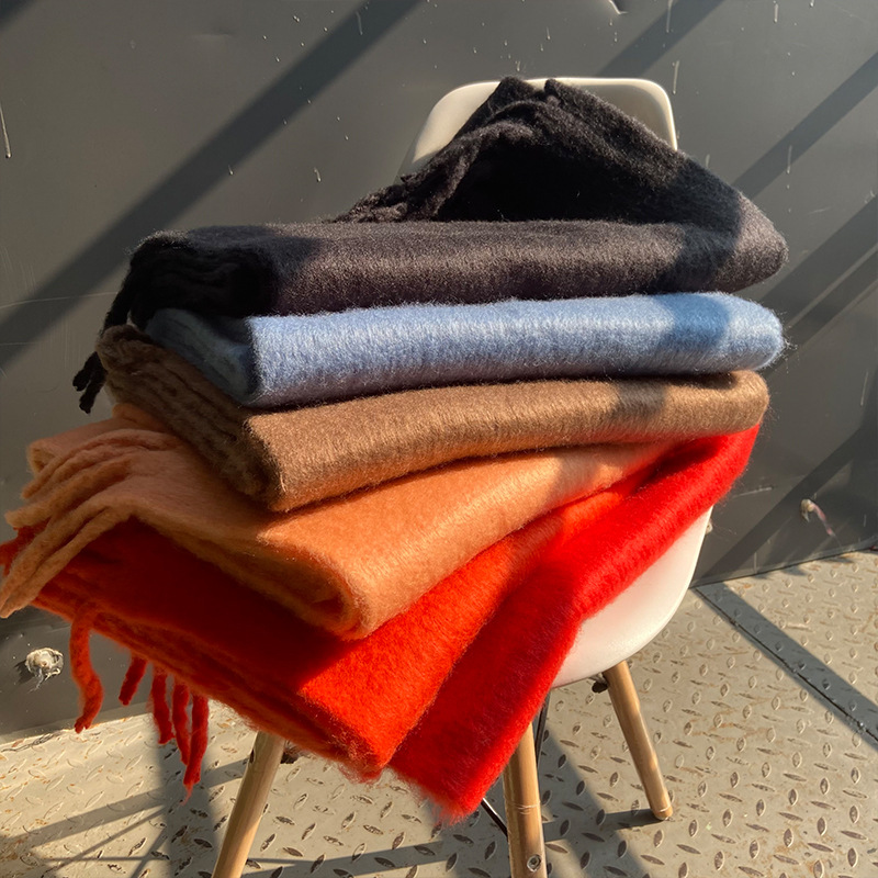 South Korea Dongdaemun Thickened Soft Waxy Mahair Scarf New Klein Blue Scarf Women's Shawl Warm Scarf