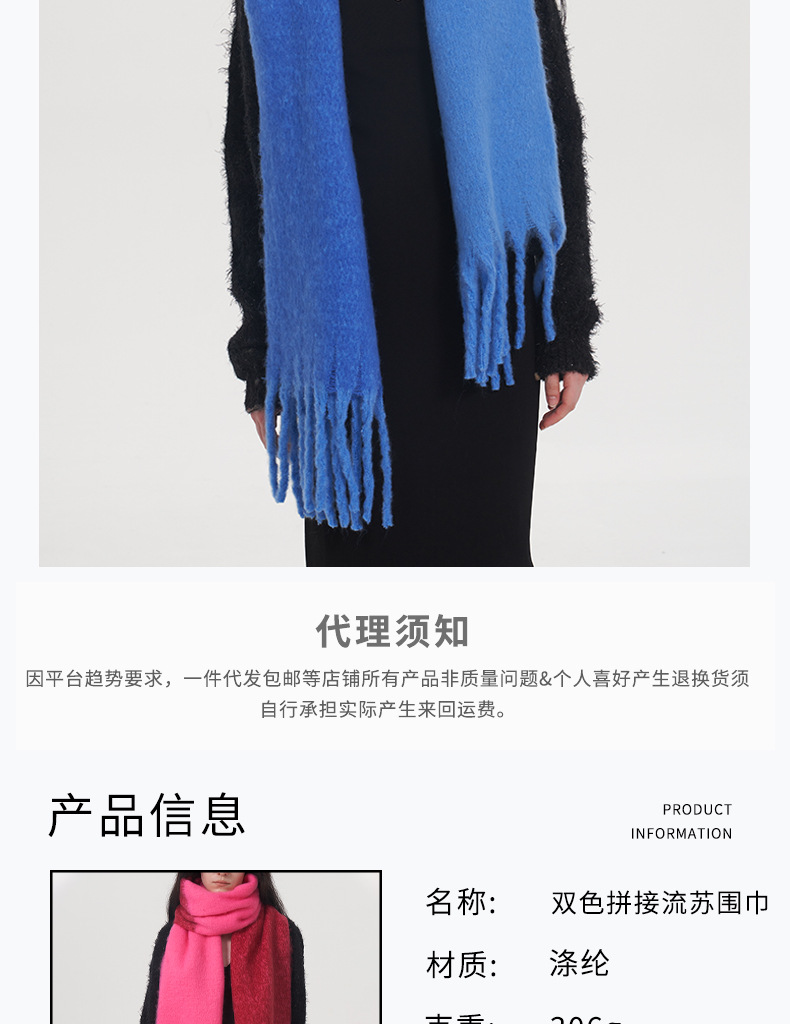 Foreign Trade Cross-border Autumn and Winter New Thickened Soft Warm Cashmere Scarf Women's Winter Mahaired Scarf Shawl