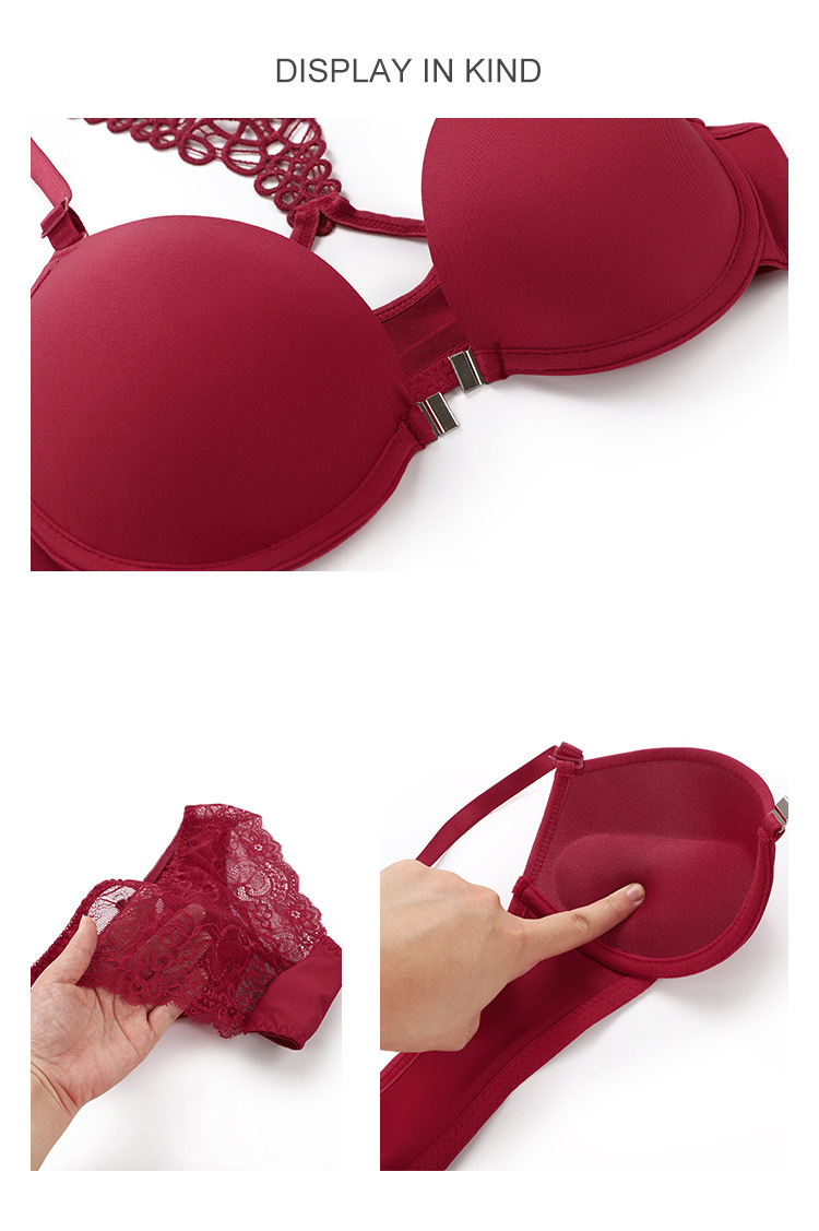 European and American red sexy underwear suit beautiful back lace front buckle with steel ring detachable bra suit wholesale