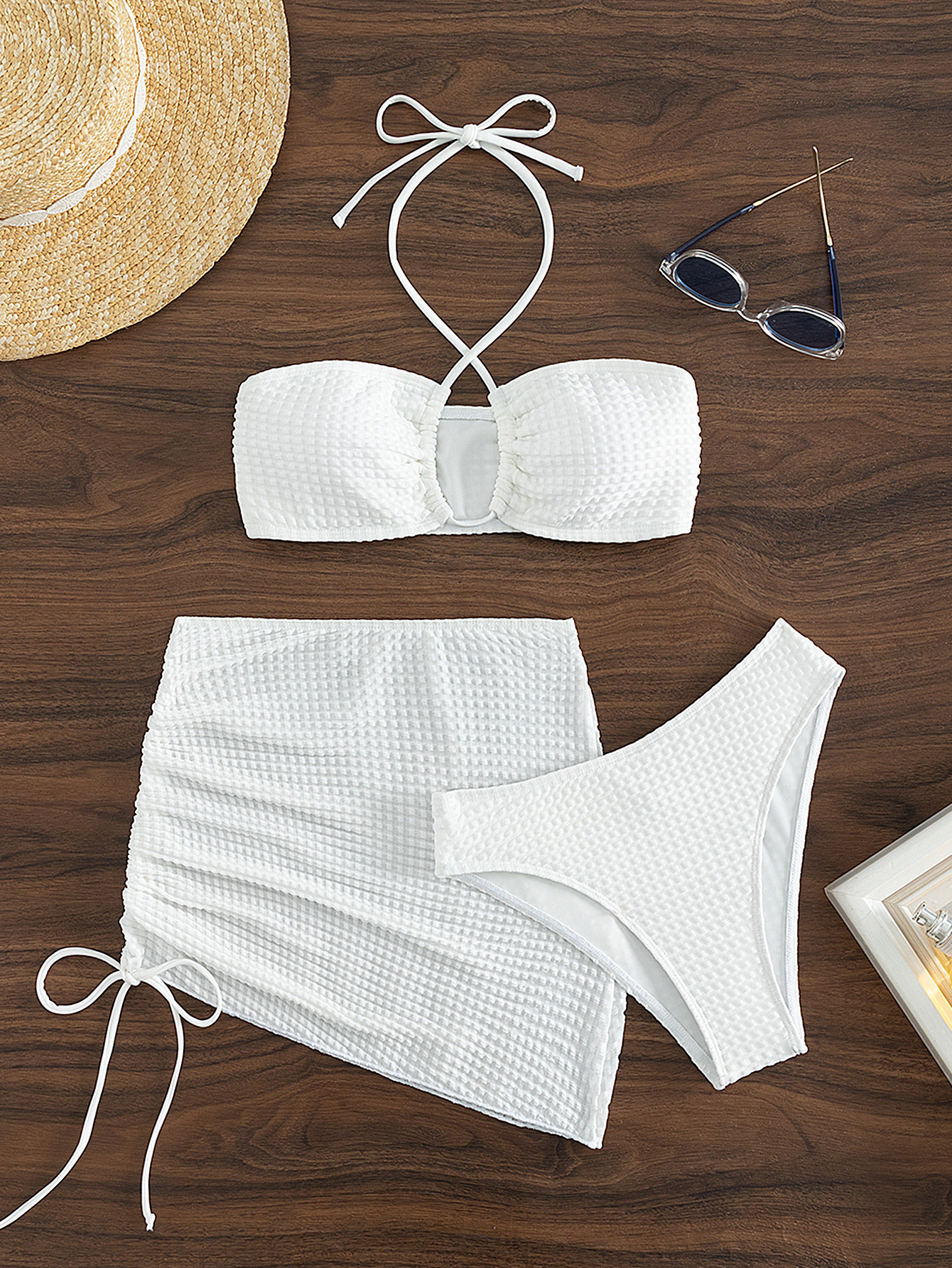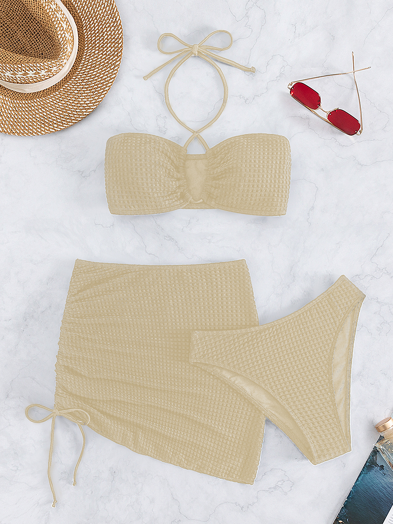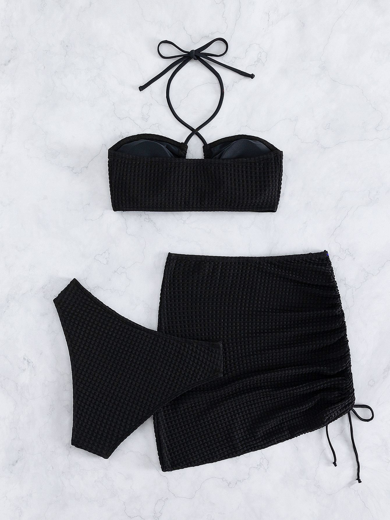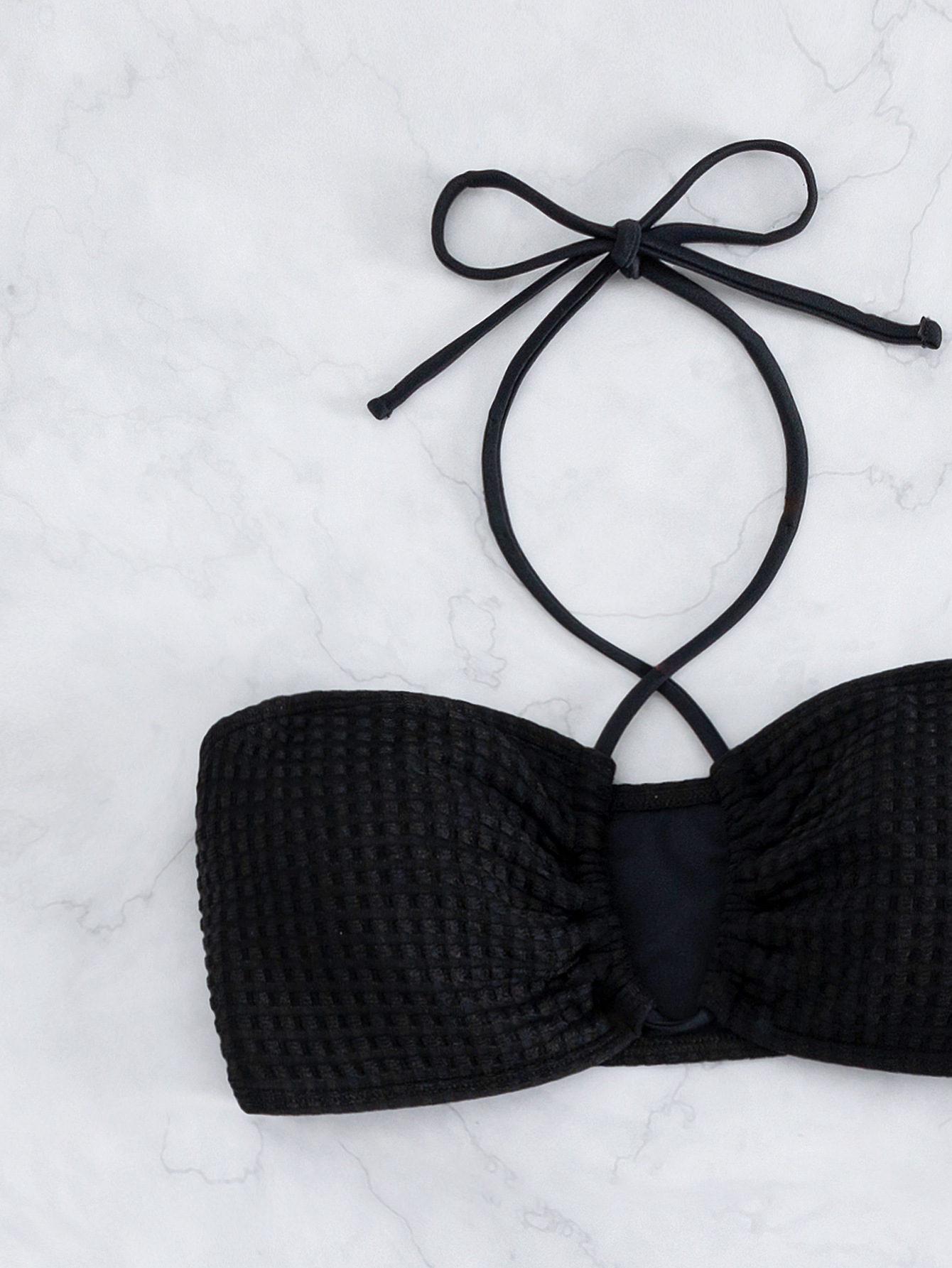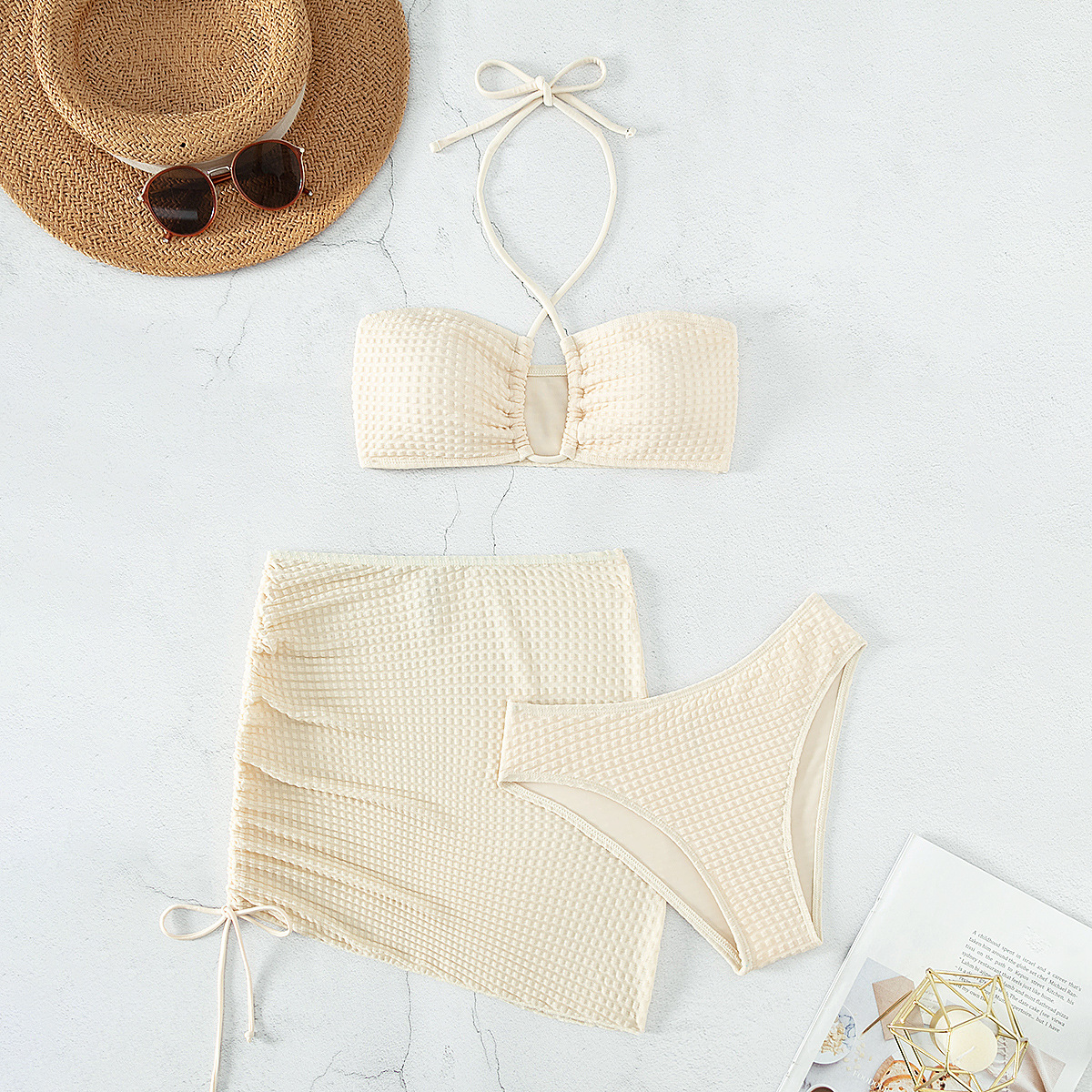 2023 European and American Foreign Trade New Sexy Split Swimsuit Instagram Bikini Solid Color Neck Lace-up Tight Swimsuit for Women
