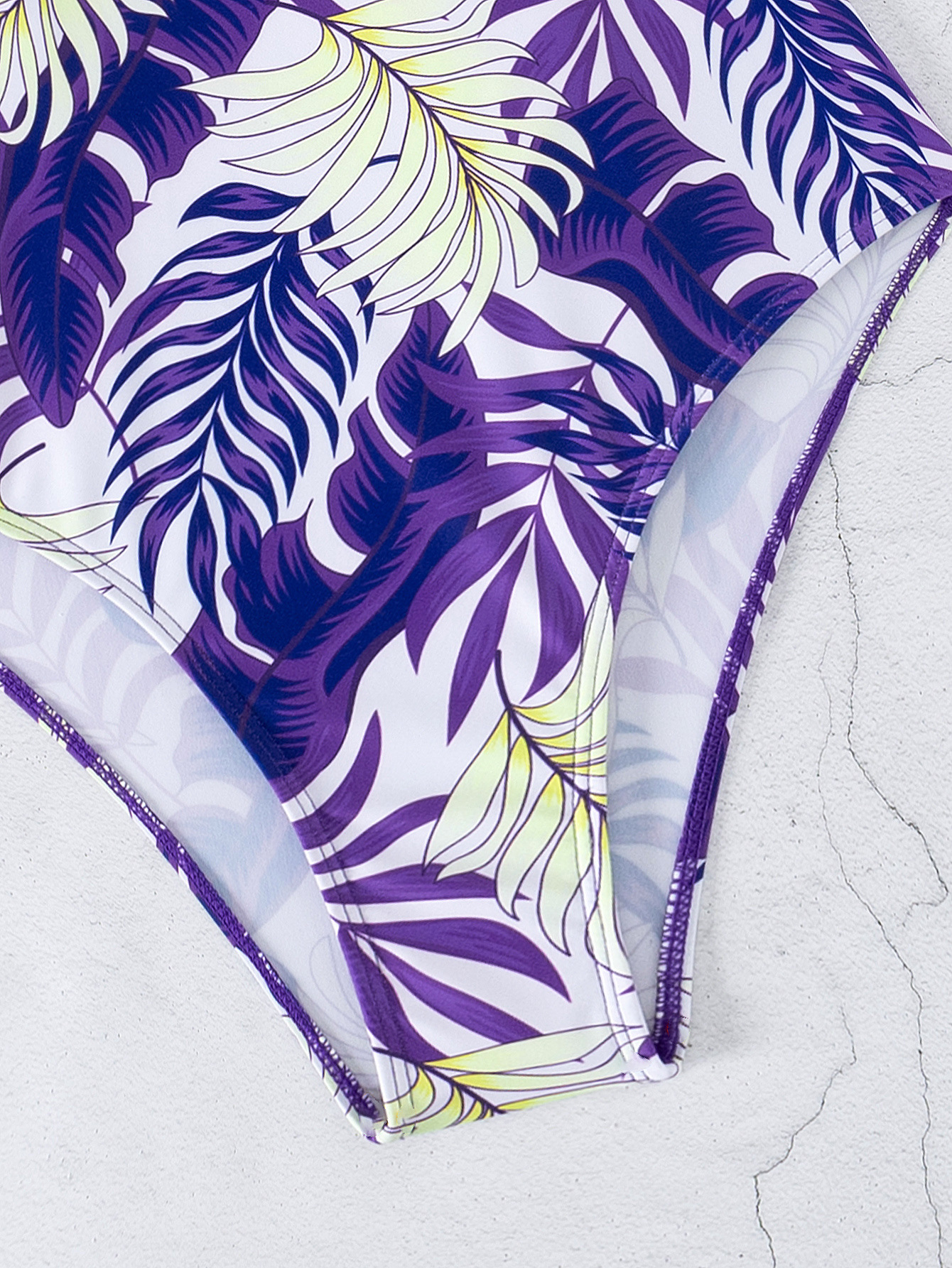 2023 New European and American Foreign Trade Printing Fashion Sexy Bikini one-piece Ruffled Lace-up Backless Swimsuit for Women