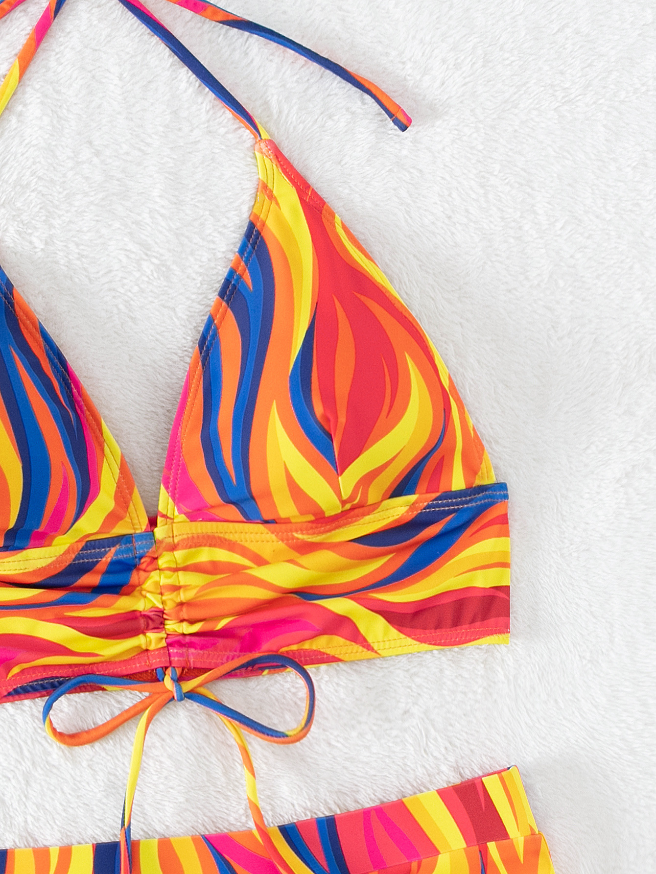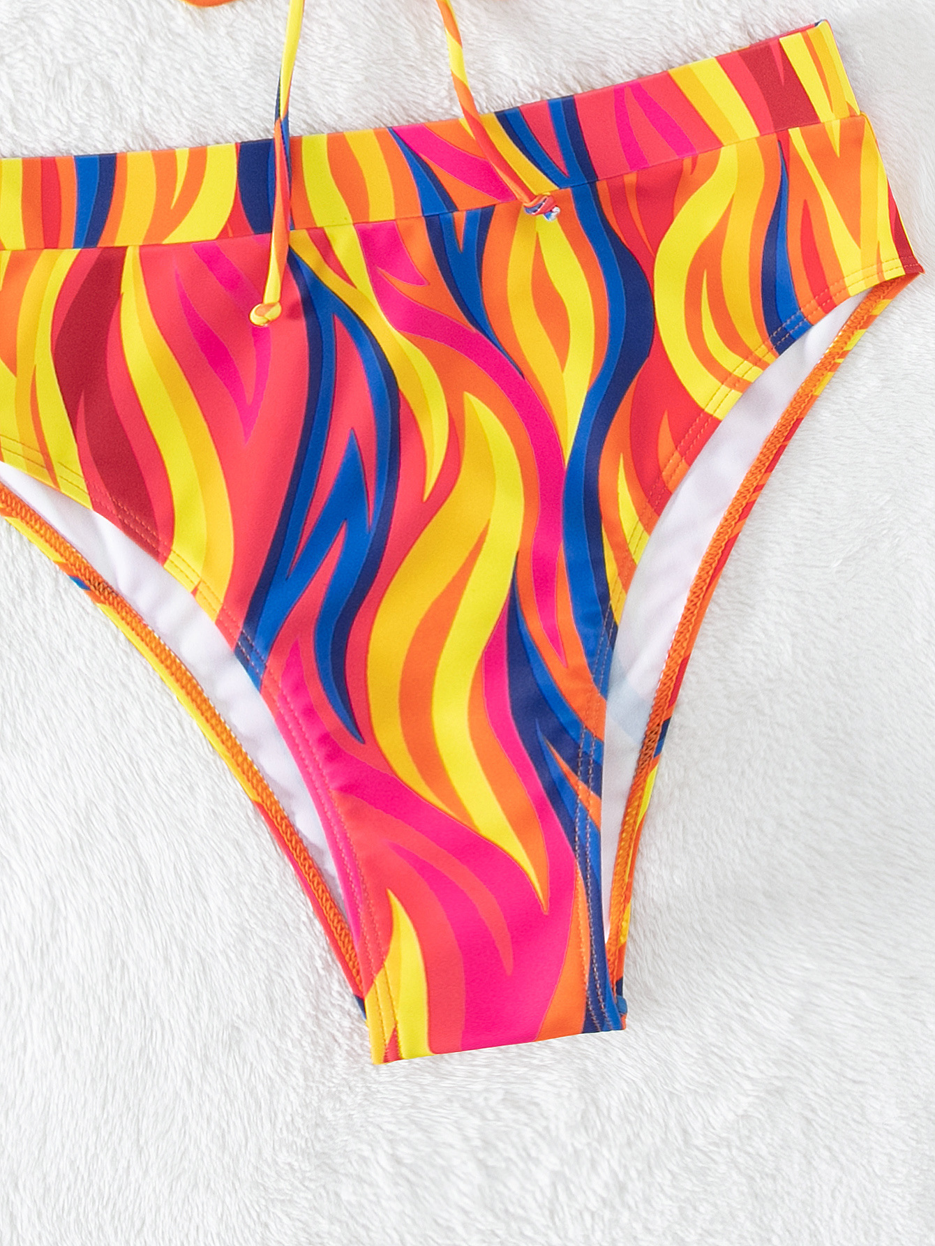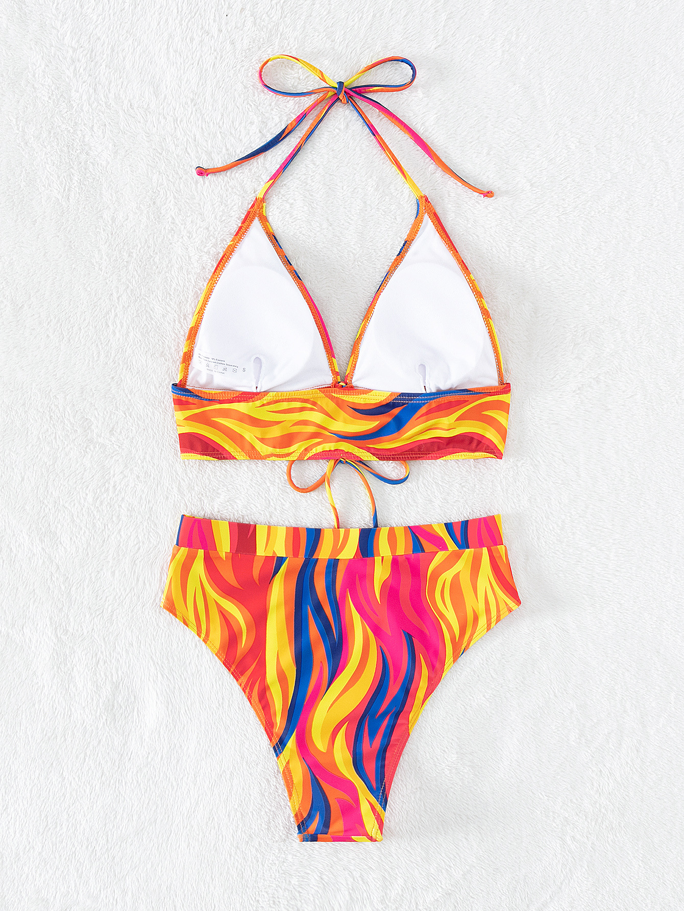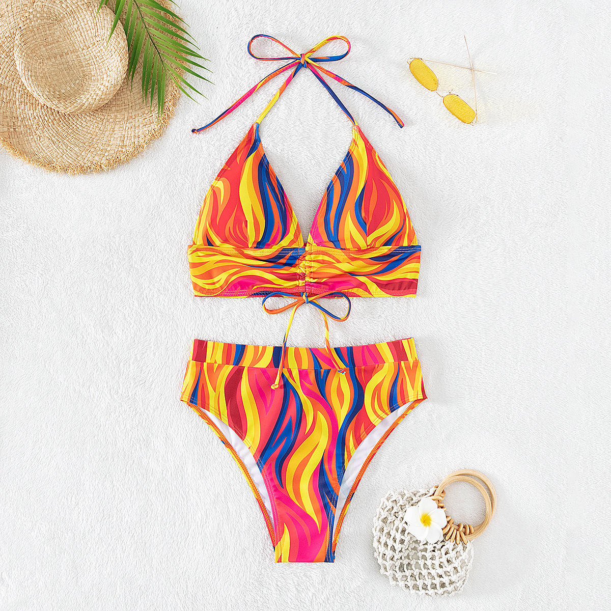 2024 Amazon Characteristic Strap Thin Shoulder Strap Printed Split Swimsuit Sexy High Waist Neck Bikini Swimsuit Women