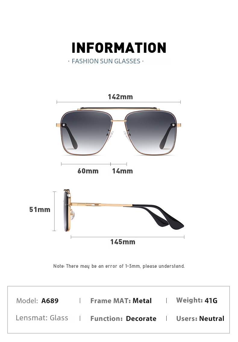 AORON new gradient sunglasses glasses colorful two-color large frame sunglasses fashion metal glasses A689
