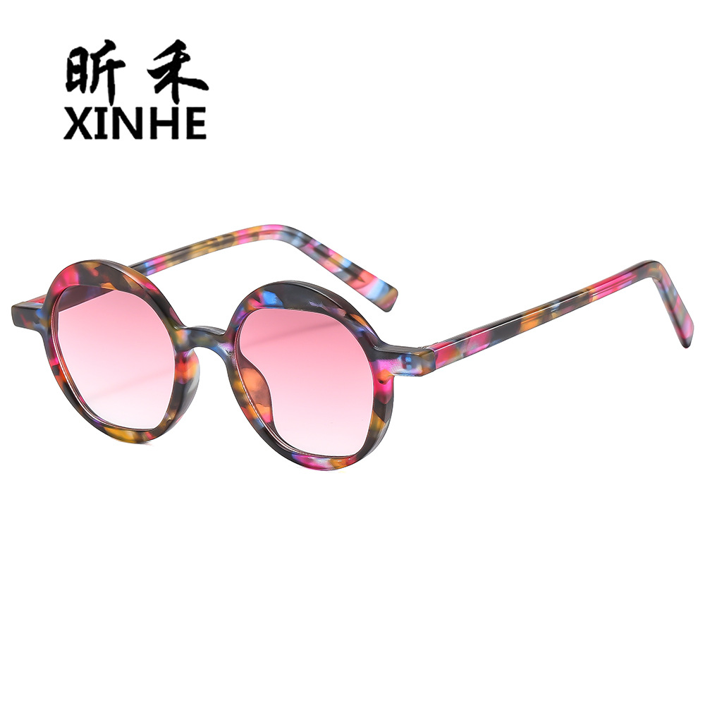 European and American Retro Women's Sunglasses TR Insert Myopia Glasses Cute Round Frame Floral Sunglasses Anti-blue Light Flat Glasses