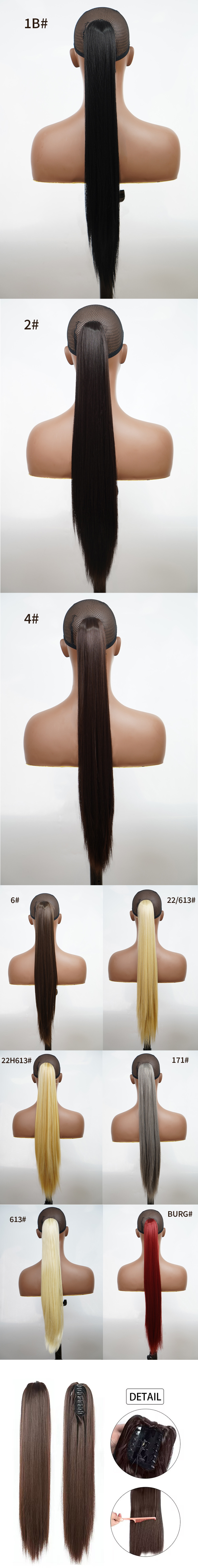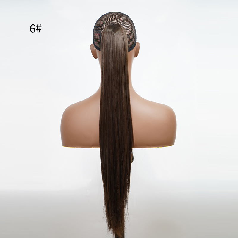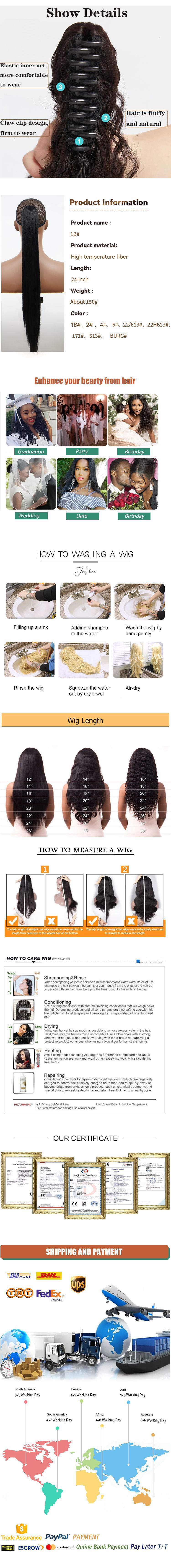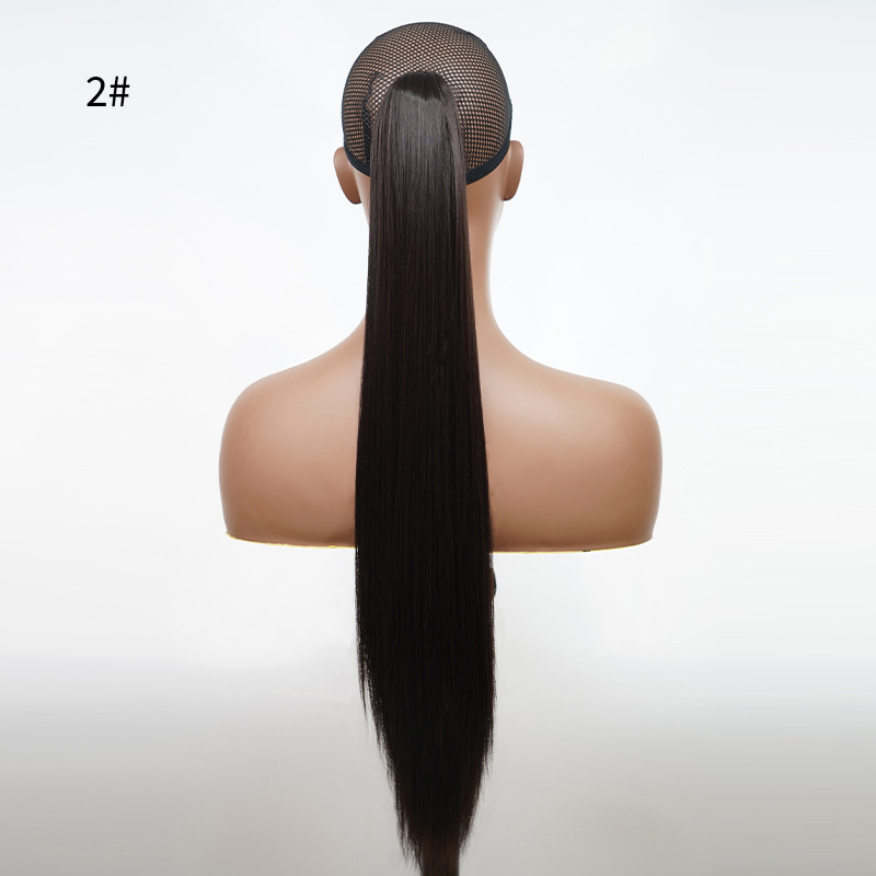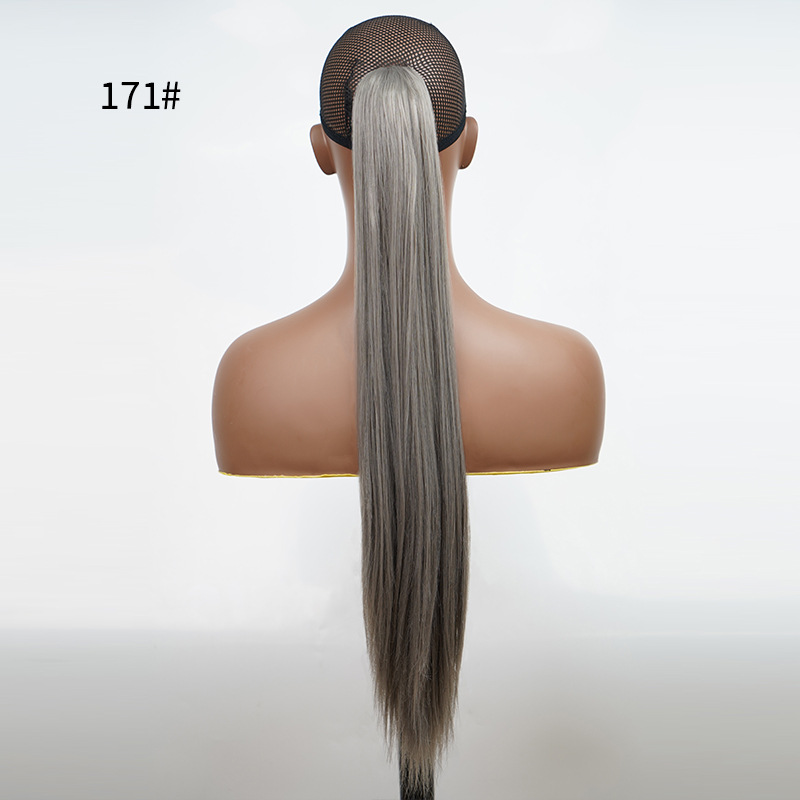 Wholesale cross-border wig ponytail chemical fiber high temperature wire 24 inch grab clip long straight hair Claw Clip Ponytail