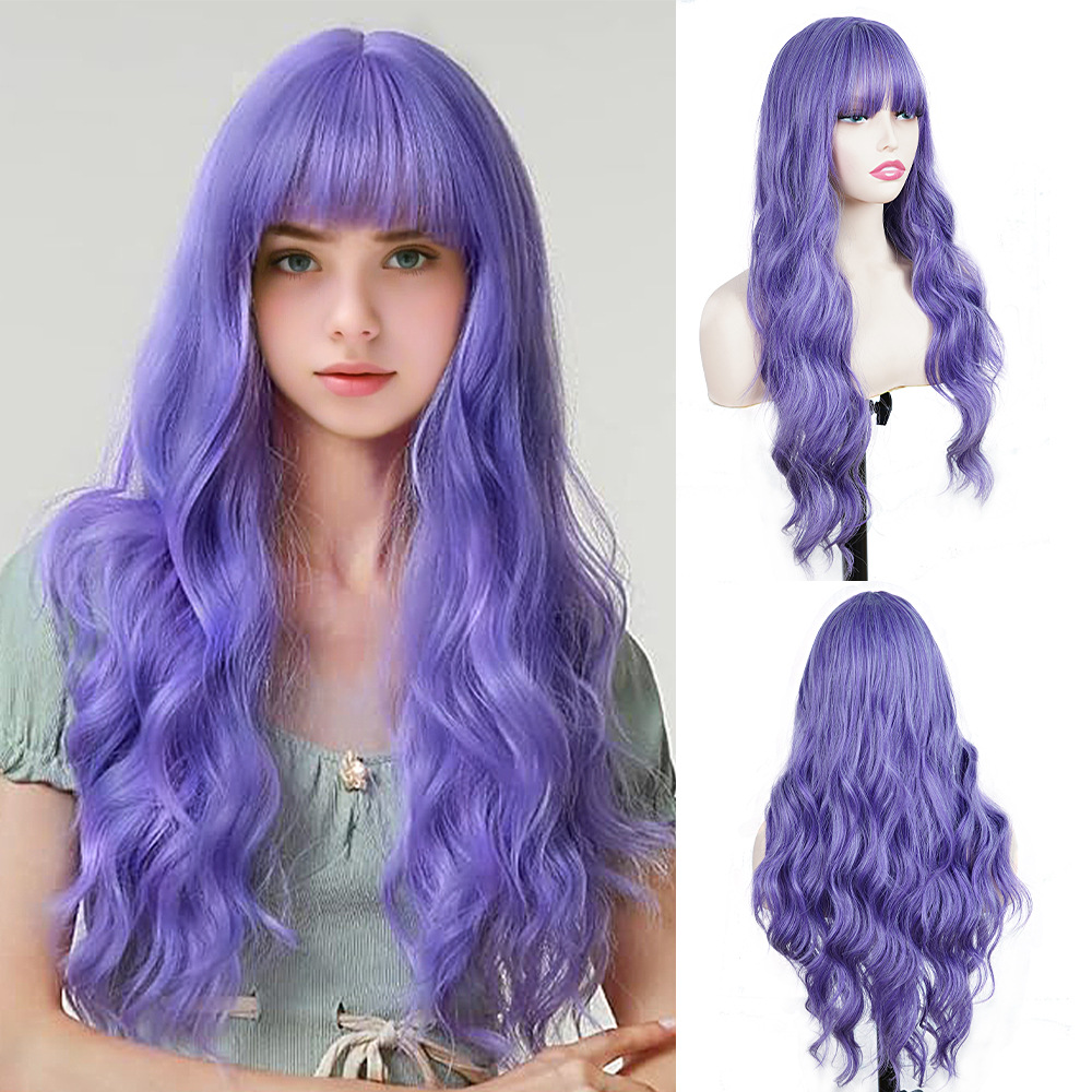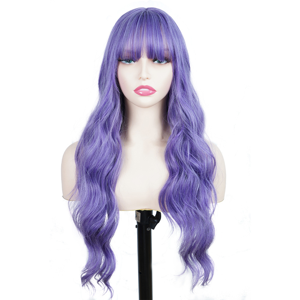 Wholesale Europe and the United States cross-border foreign trade cosplay wig chemical fiber wig purple neat bangs long curly hair corrugated headgear