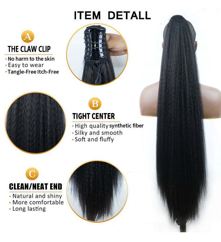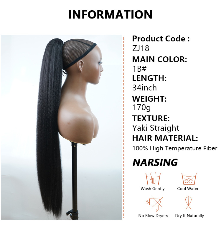 Wholesale European and American cross-border African black wig 34 inch grip yaki straight chemical fiber braid ponytail