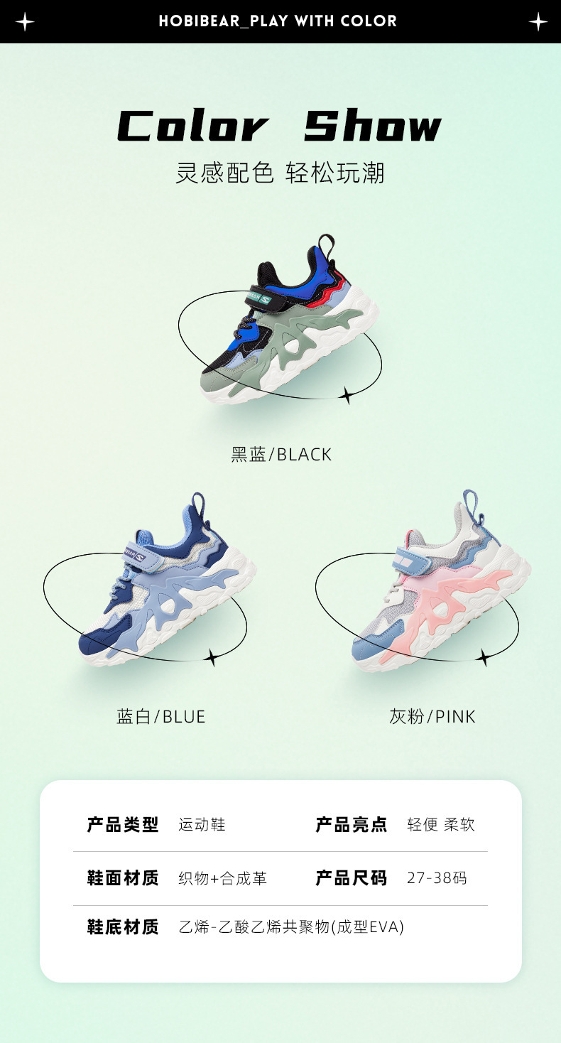 HOBIBEAR Double Mesh Boys' sneaker Autumn Breathable Mesh Girls' Casual Shoes Contrast Color Tide Shoes Factory