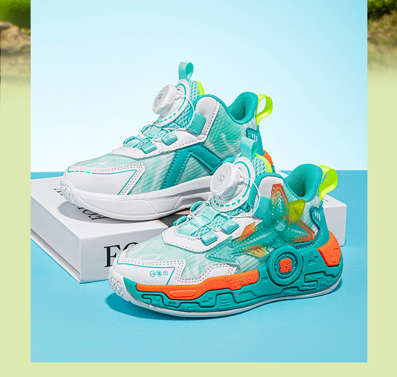 HOBIBEAR mesh autumn boys spin buckle basketball shoes sneaker soft fabric button shoes a generation of hair