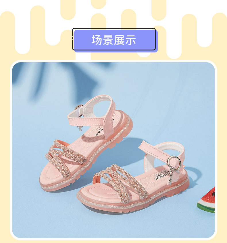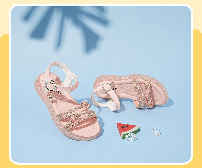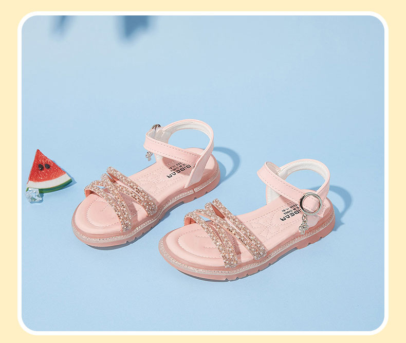 HOBIBEAR children's shoes 2023 summer new girls princess crystal sandals light beach shoes manufacturers on behalf of hair