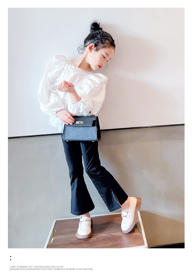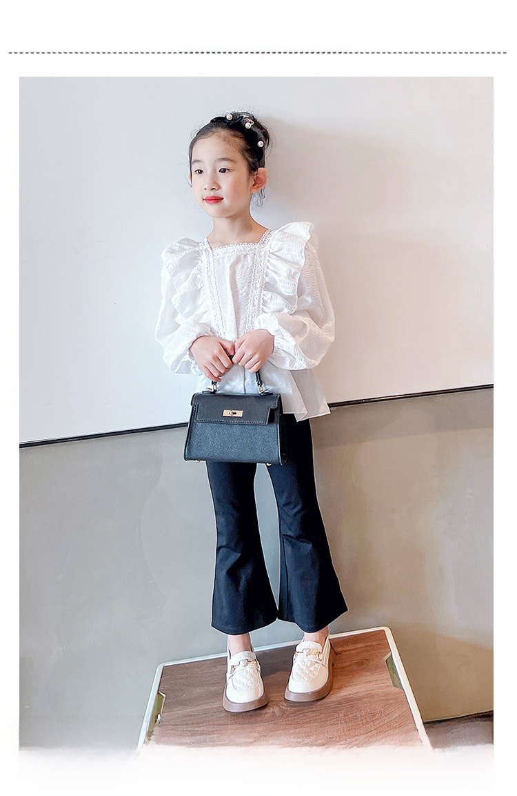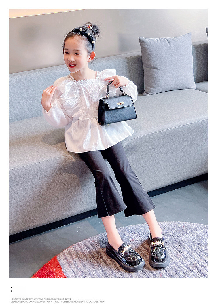 Girl's Small Leather Shoes 2024 Spring New Style Little Girl's Soft Bottom Metal Buckle Single-layer Shoes Children's Non-slip Lightweight Black Single-layer Shoes