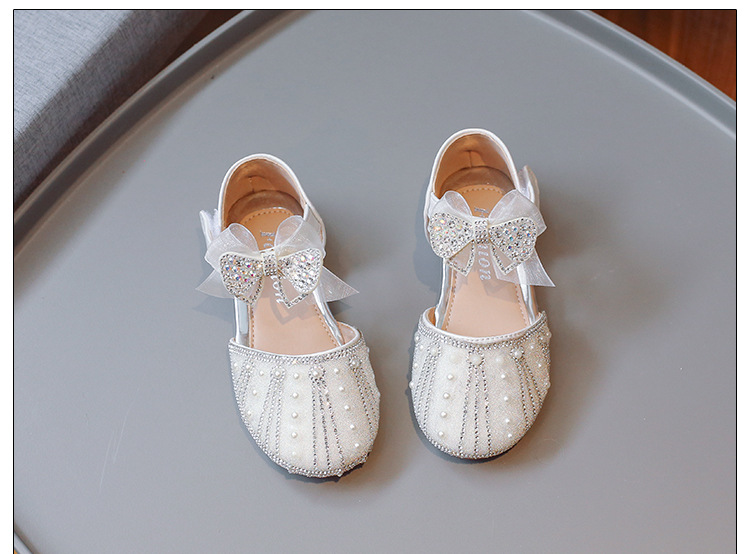 Girls Princess Semi Sandals 2024 Summer New Children Cute Bow Shiny Pearl Rhinestone Shoes