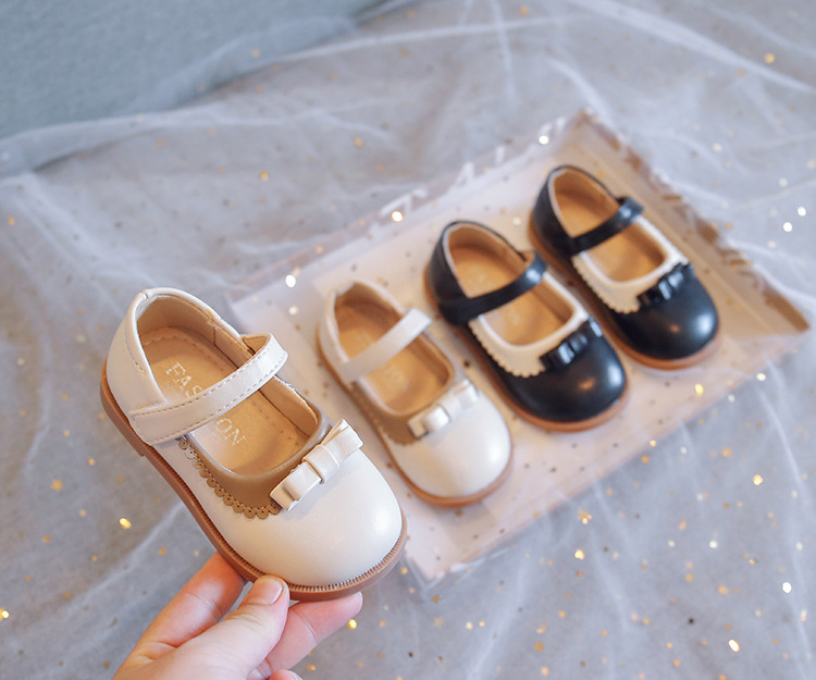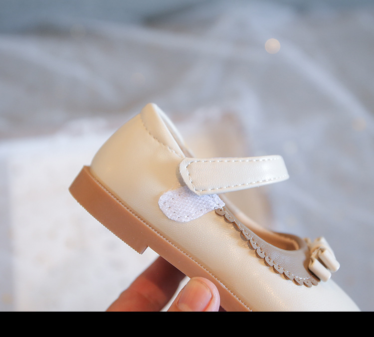 Girls' Shoes for Spring and Autumn 2024 New Black Small Lace Cute Bow Children's Solid Color Small Leather Shoes Korean