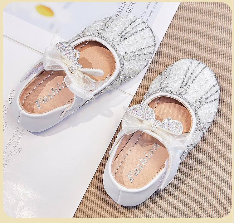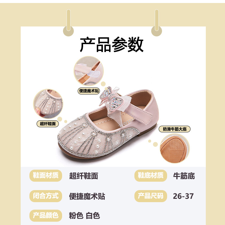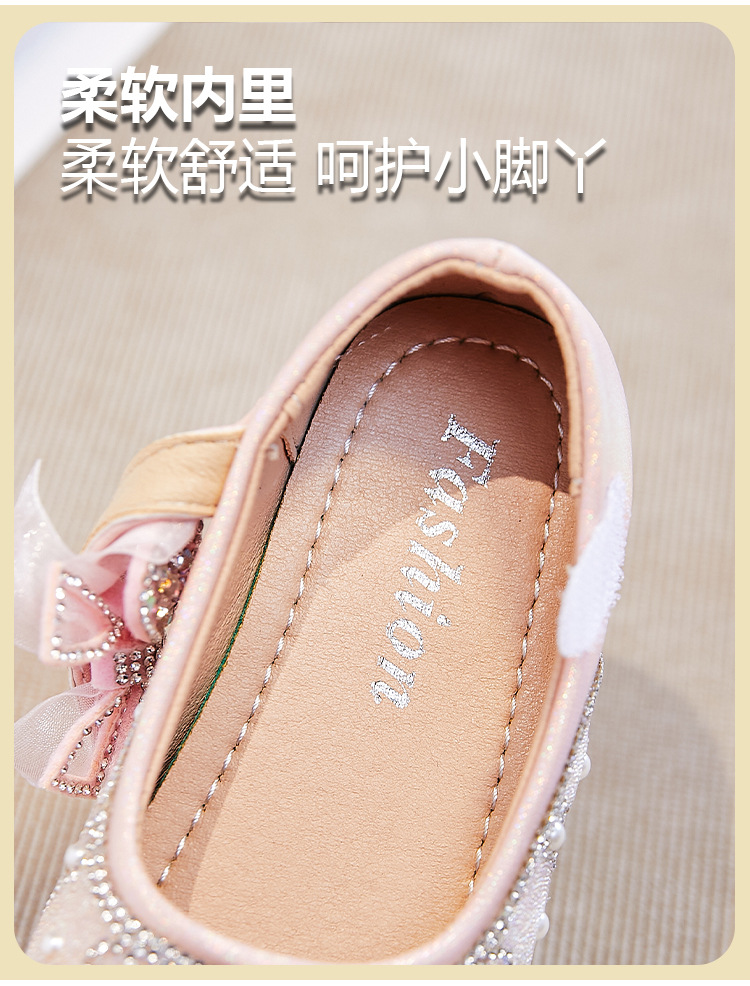 Girls Shiny Rhinestone Show Shoes Spring 2024 New Children Mesh Bow Shoes Princess