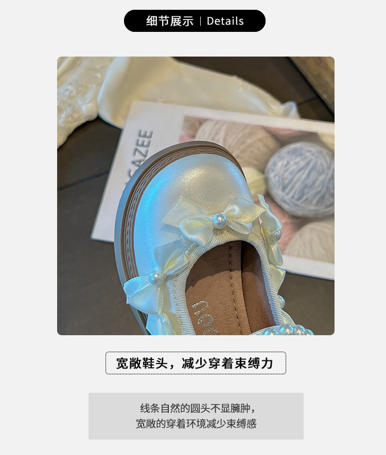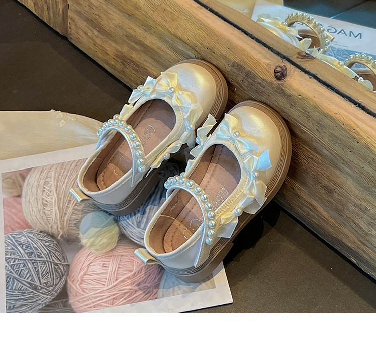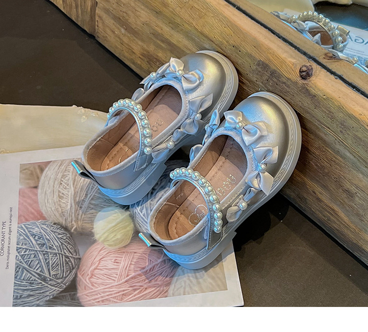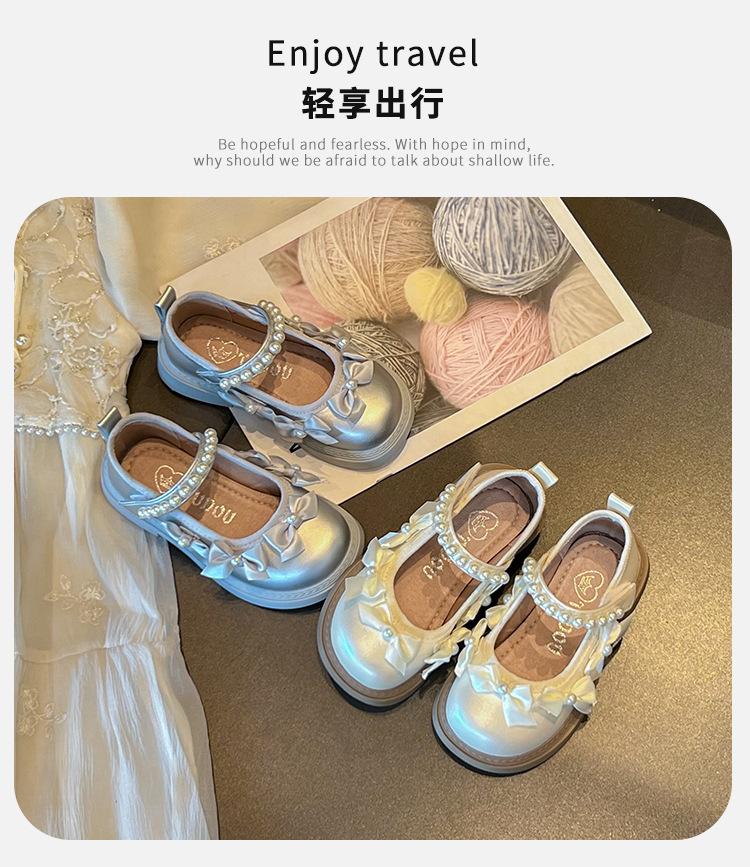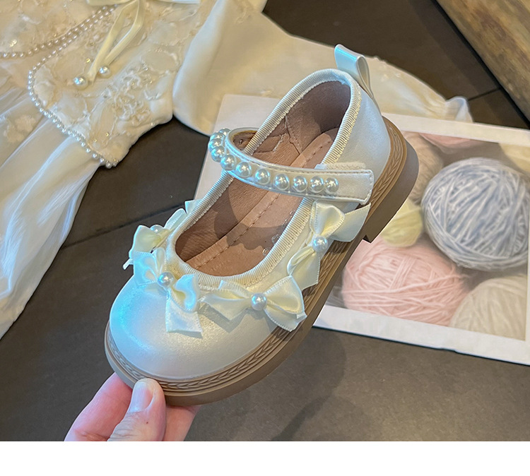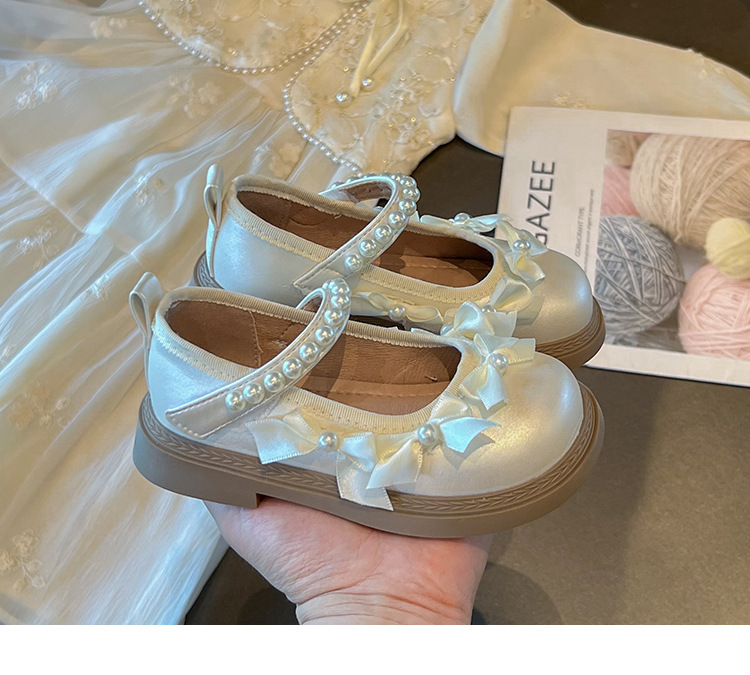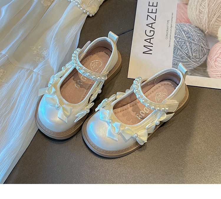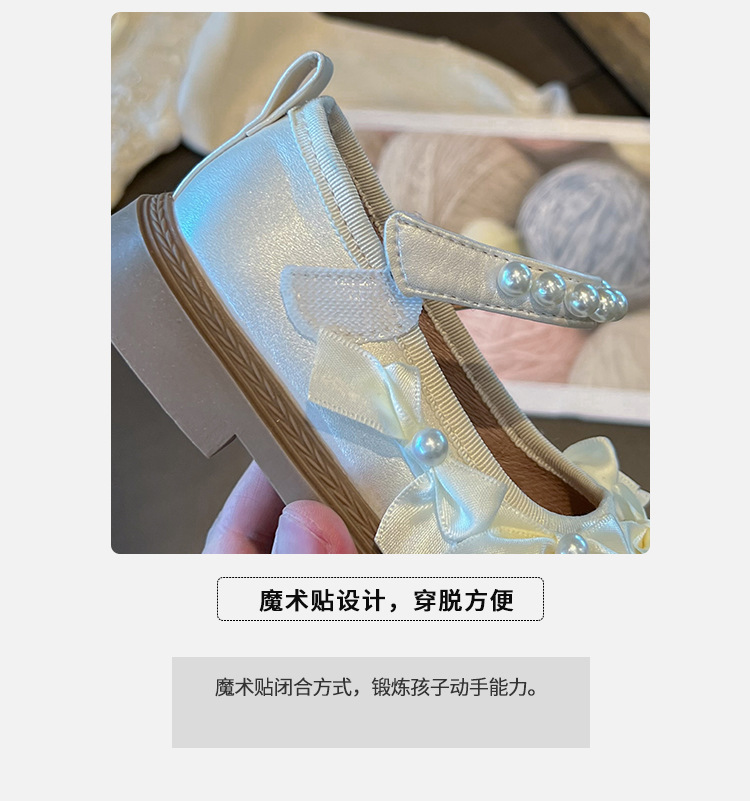 Girls' Leather Shoes 2024 Autumn New Children's Little Girl Lace Soft Bottom Beaded Middle and Big Children's Performance Princess Shoes Single-layer Shoes