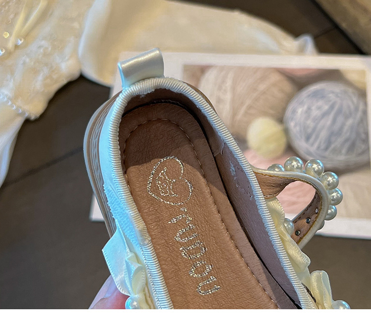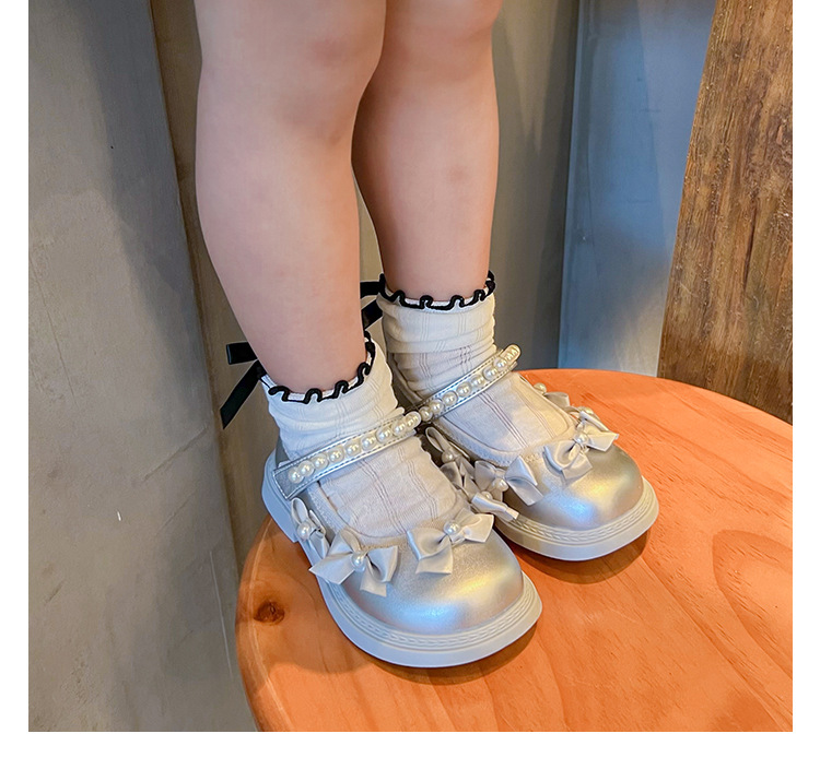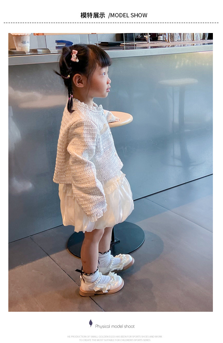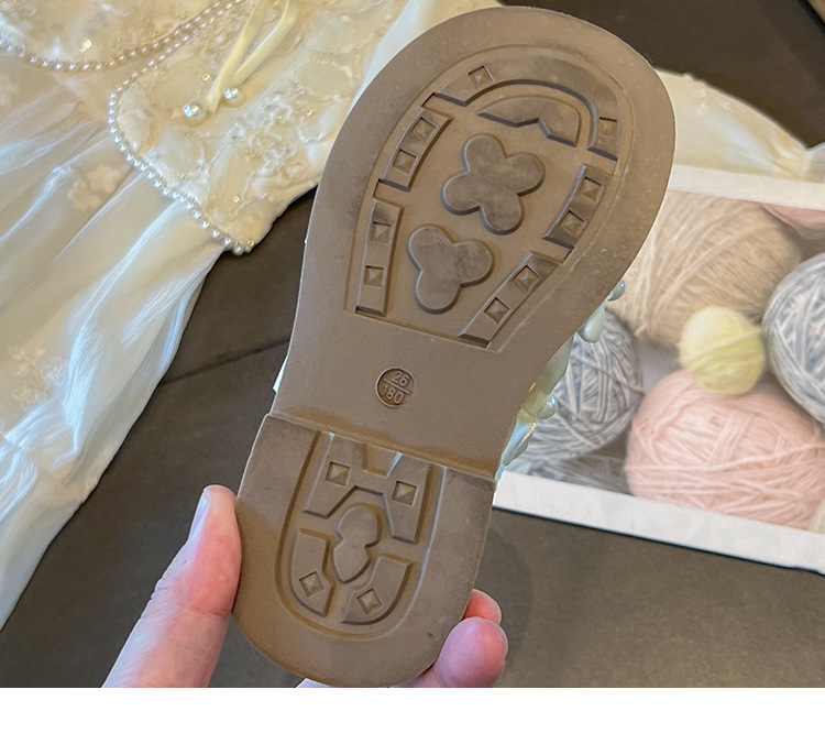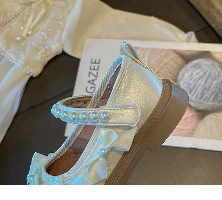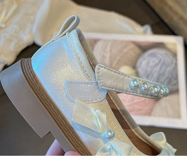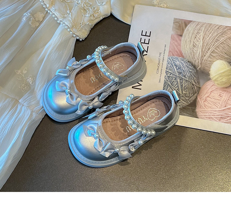 Girls' Leather Shoes 2024 Autumn New Children's Little Girl Lace Soft Bottom Beaded Middle and Big Children's Performance Princess Shoes Single-layer Shoes