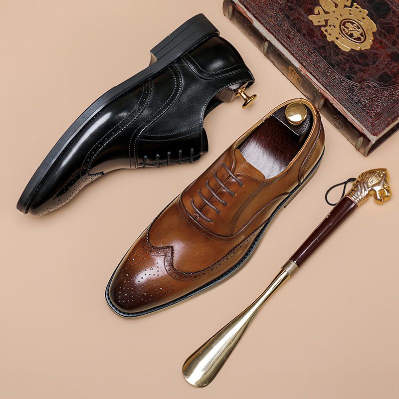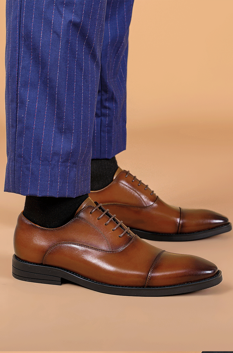 Men's Leather Shoes Business Formal Oxford Shoes Leather Shoes Men's Top Layer Cowhide Three-Joint Genuine Leather Men's Shoes British Style Wedding Shoes