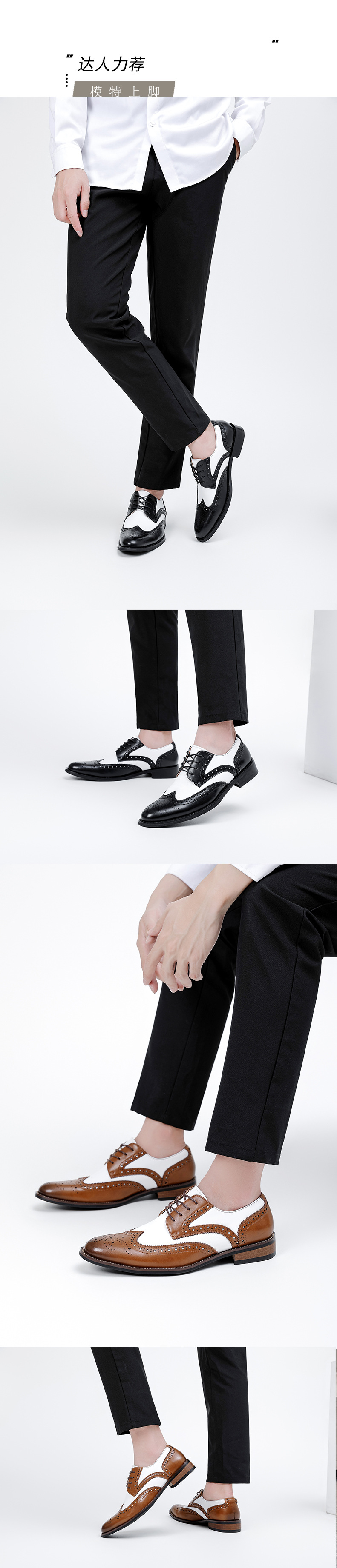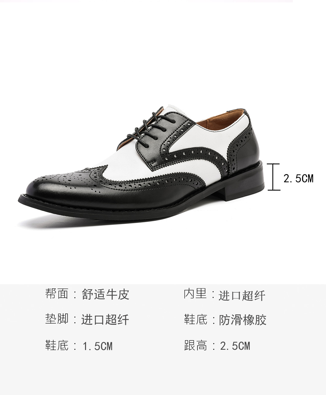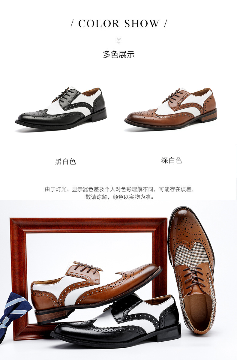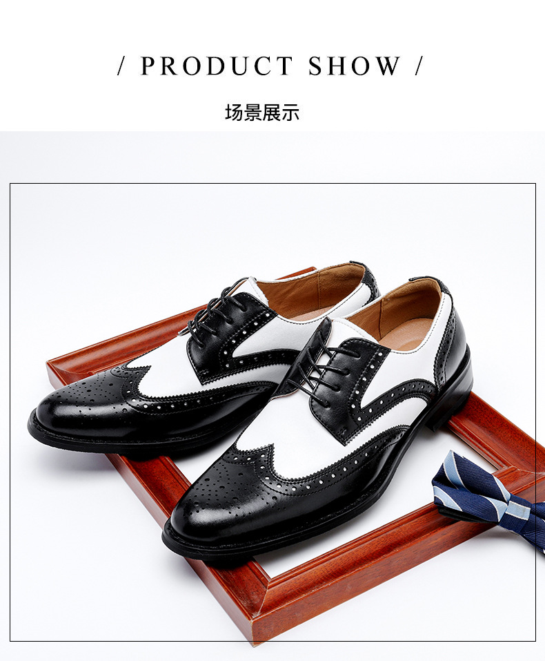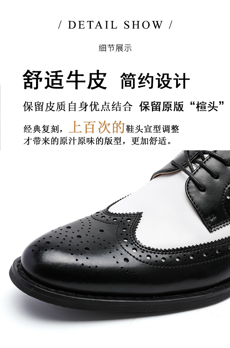 Leather Shoes Men's Genuine Leather British plus size Dress Black and White Color Block Men's Shoes Carved Brock Leather Shoes Wedding Shoes Derby Shoes