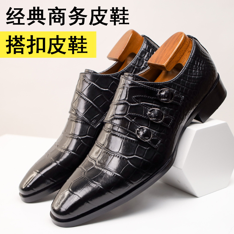 Cross-border plus size brogue shoes 2024 new summer breathable leather shoes men's business formal embossed monk shoes men