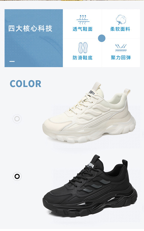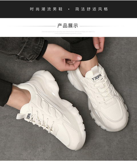 Men's Shoes 2024 Summer New Style Mesh Breathable Soft Sole Running Shoes Men's Sports Casual Shoes Thick Sole Trendy Daddy Shoes