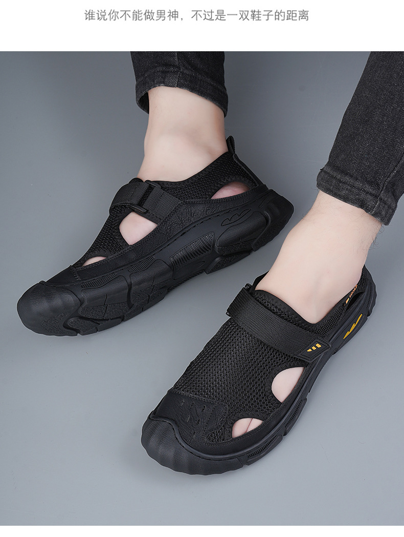 Sandals Men's 2024 Summer New All-match Fashionable Casual Beach Shoes Mesh Breathable Soft Sole Men's Shoes Hole Shoes