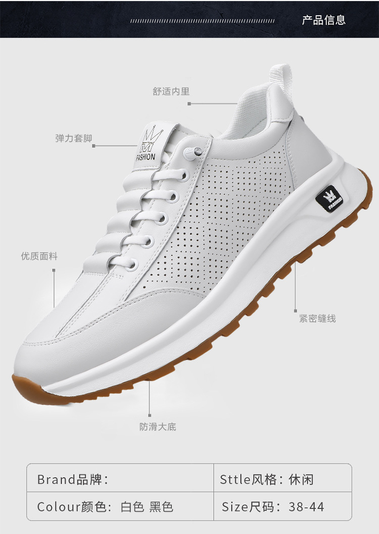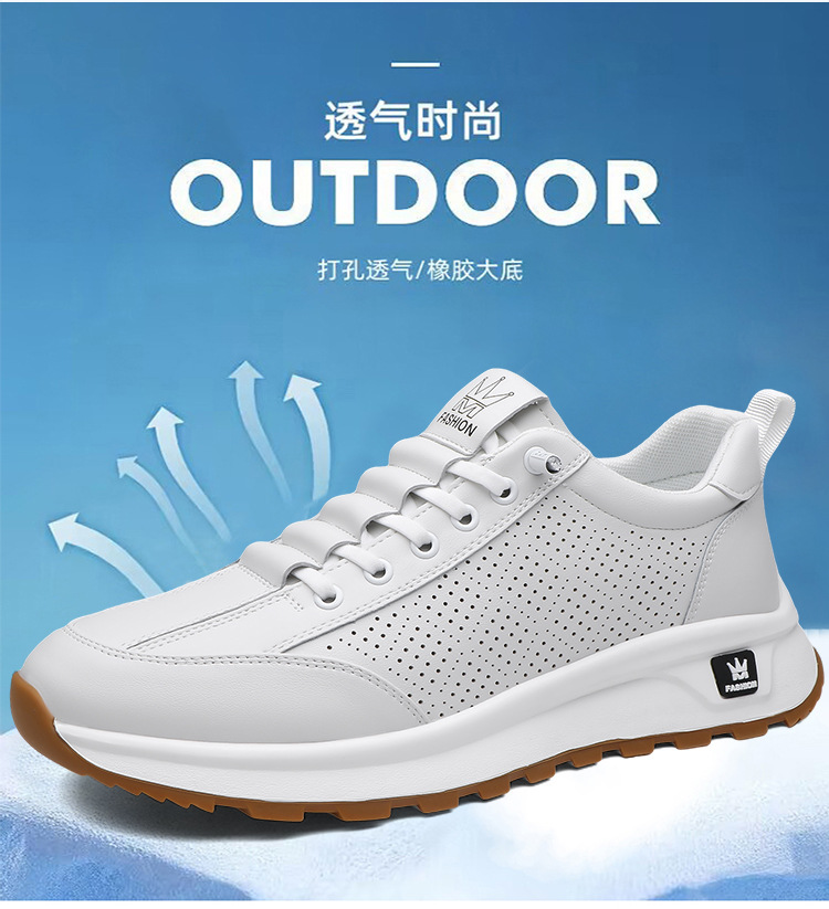 Men's Shoes Summer New Sports Casual Slip-on Sneakers Men's Genuine Leather All-Match White Shoes Hollow Leather Shoes Men's Trendy