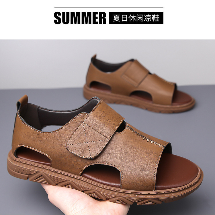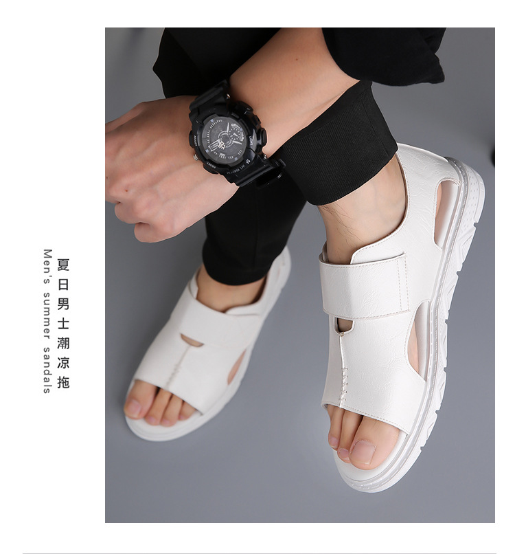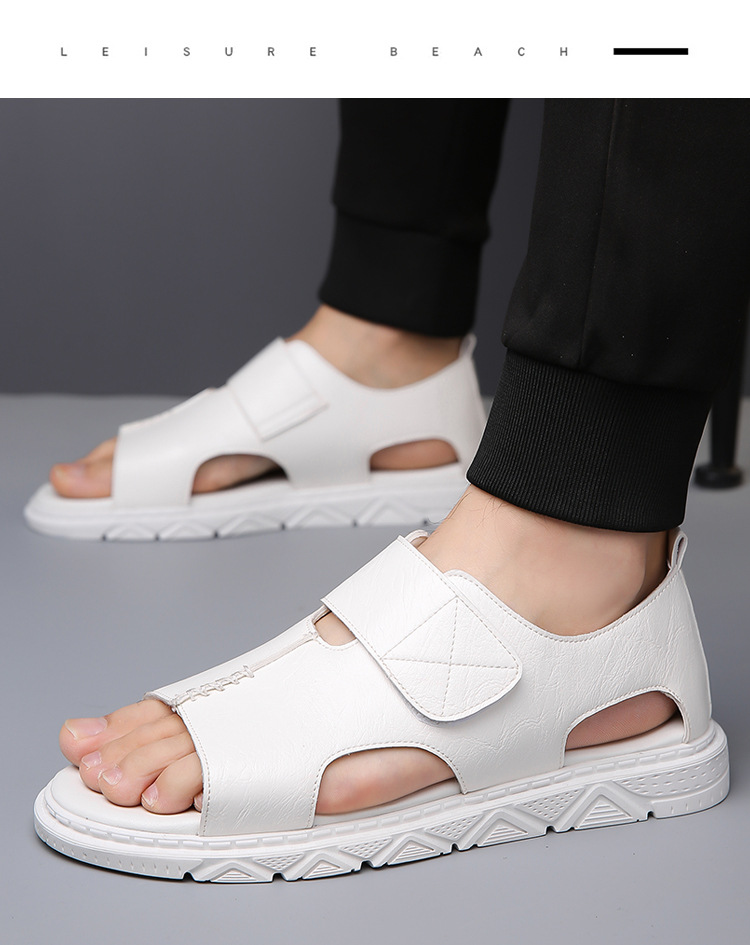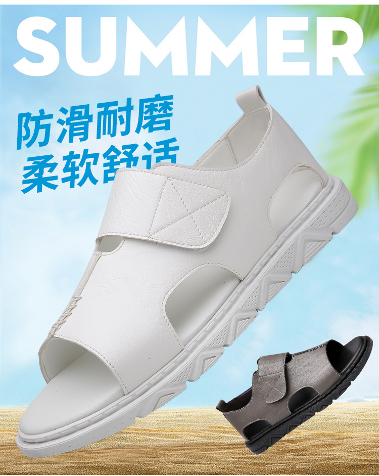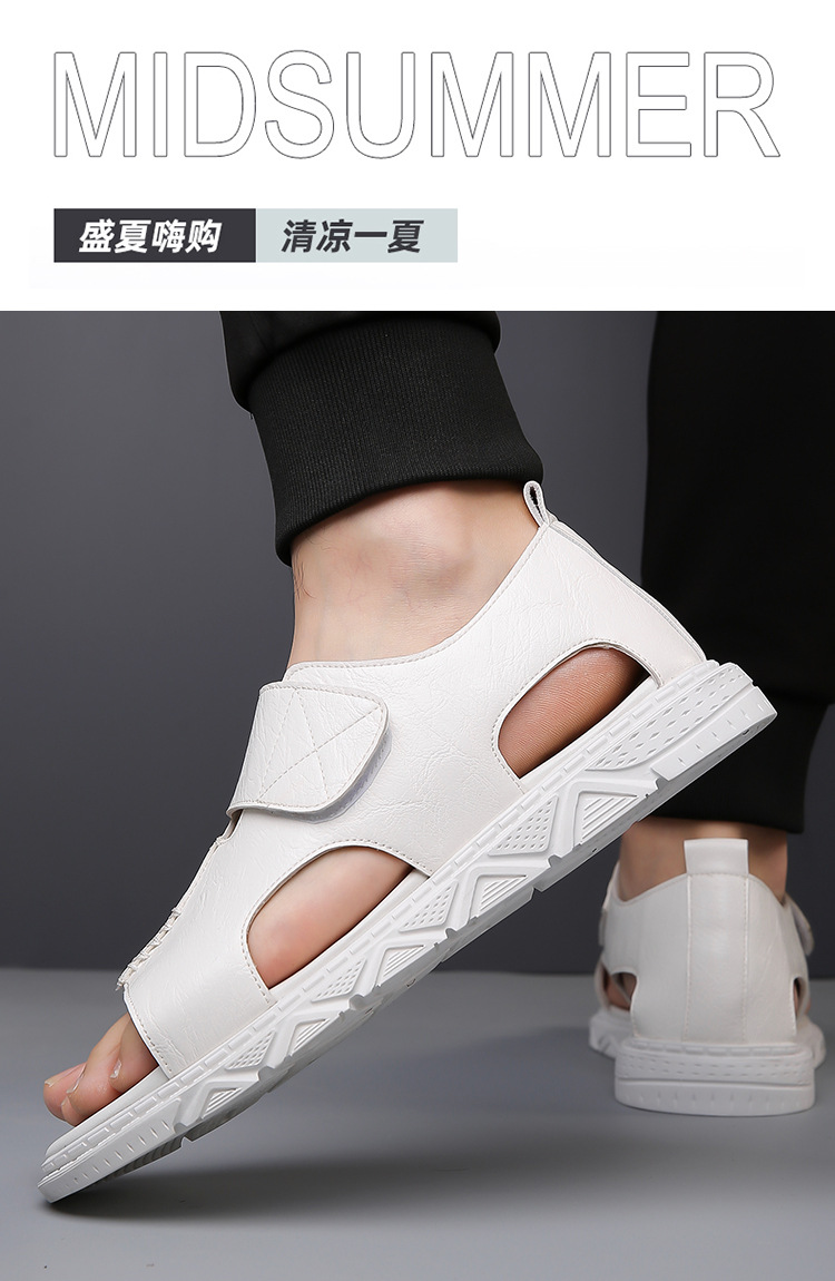 2024 Summer New Style Outer Wear Sandals Men's Casual Beach Shoes White Breathable Soft Sole Non-slip Roman Leather Sandals