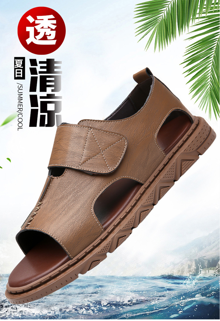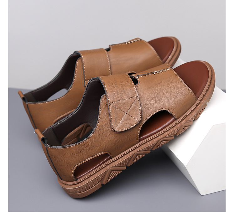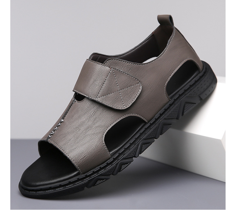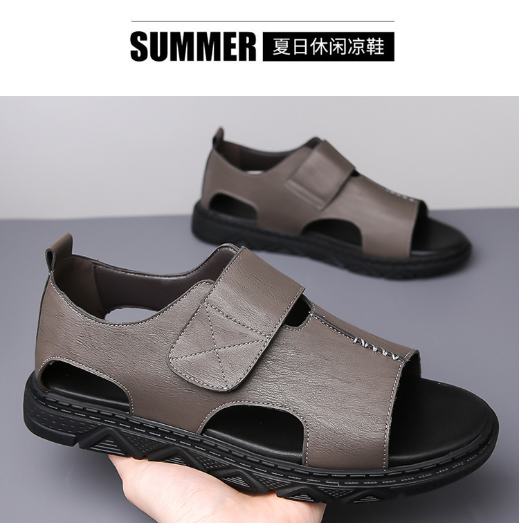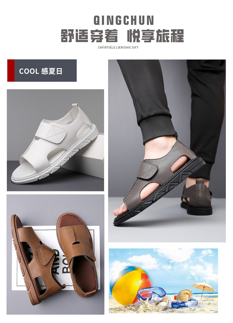 2024 Summer New Style Outer Wear Sandals Men's Casual Beach Shoes White Breathable Soft Sole Non-slip Roman Leather Sandals