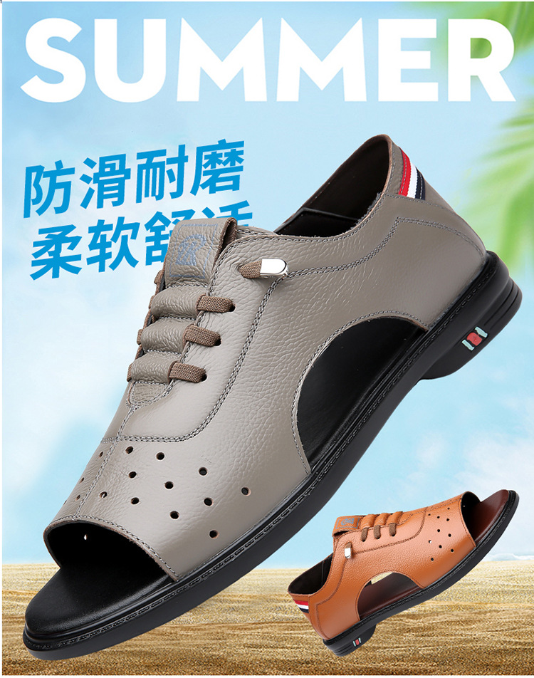 Sandals Men's Summer 2024 New Style Slip-on Roman Casual Hollow Breathable Soft Bottom Non-slip Beach Hole Shoes