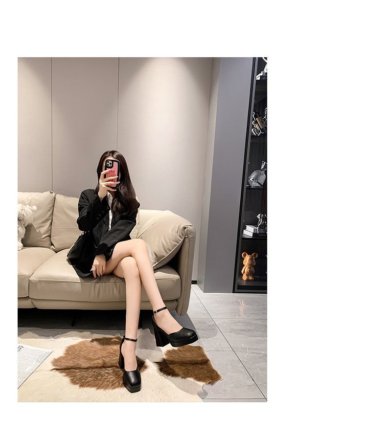 High Heels Hole Shoes 2023 Spring and Autumn New Square Head Thick Heel Jane Shoes Waterproof Platform Baotou Square Heel Single Shoes for Women