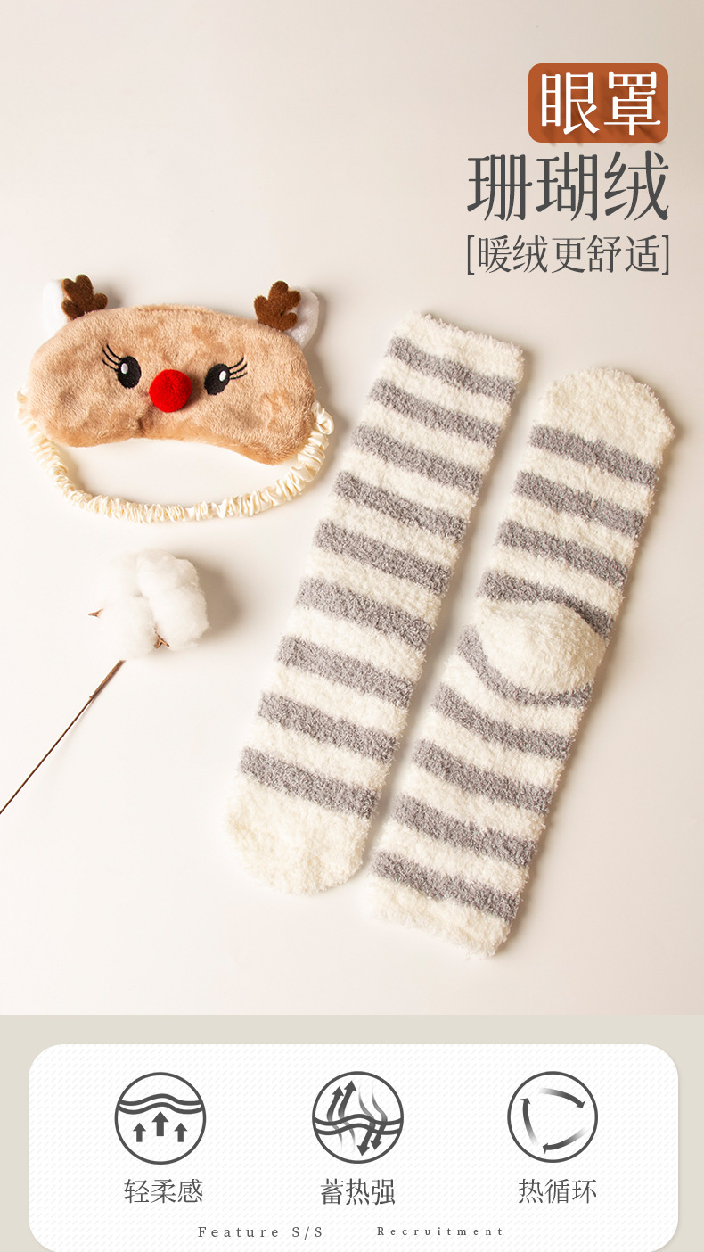 Eye mask sleep socks combination cross-border hot-selling cute coral fleece thick warm socks do not shed hair autumn and winter socks