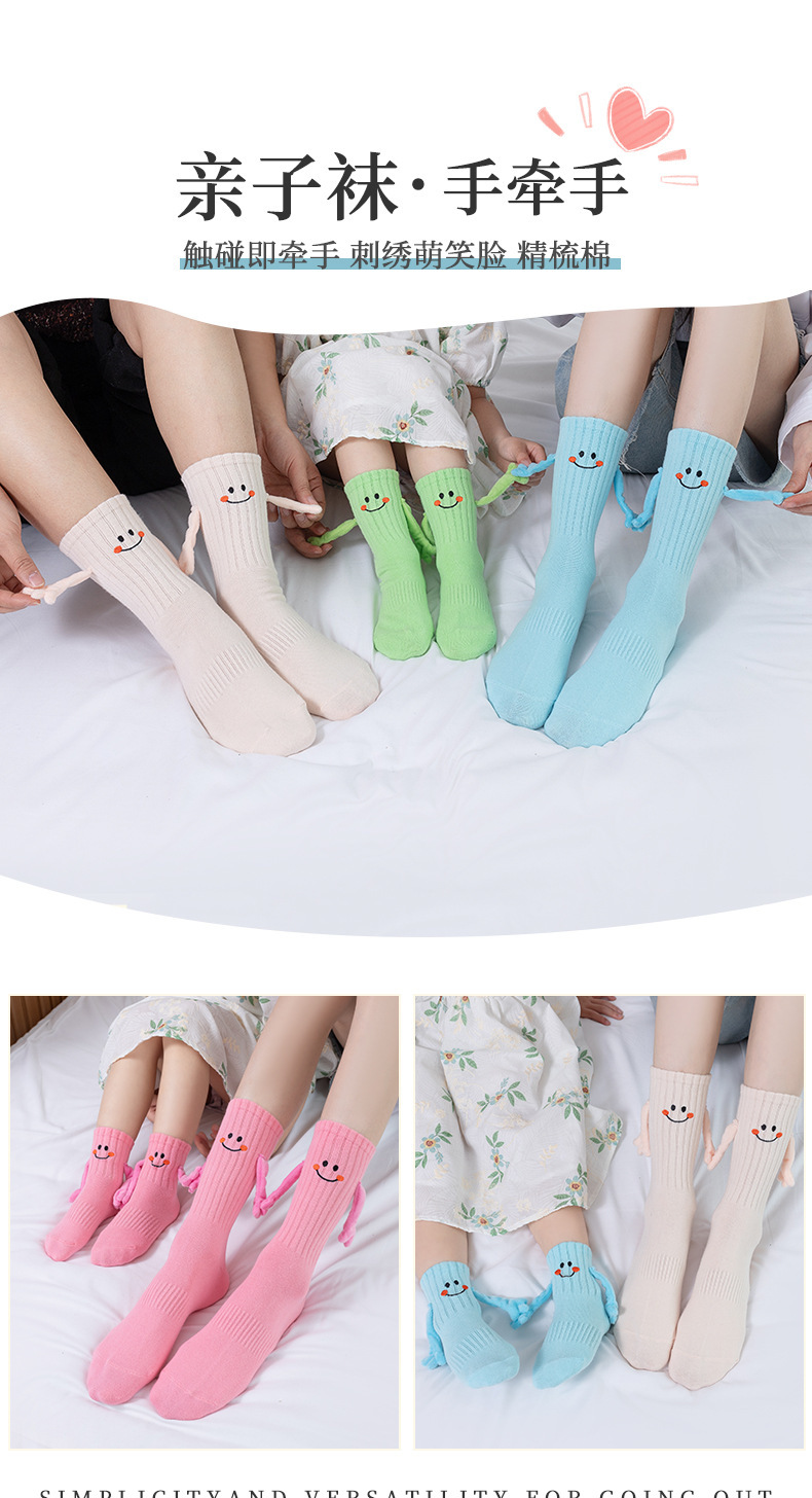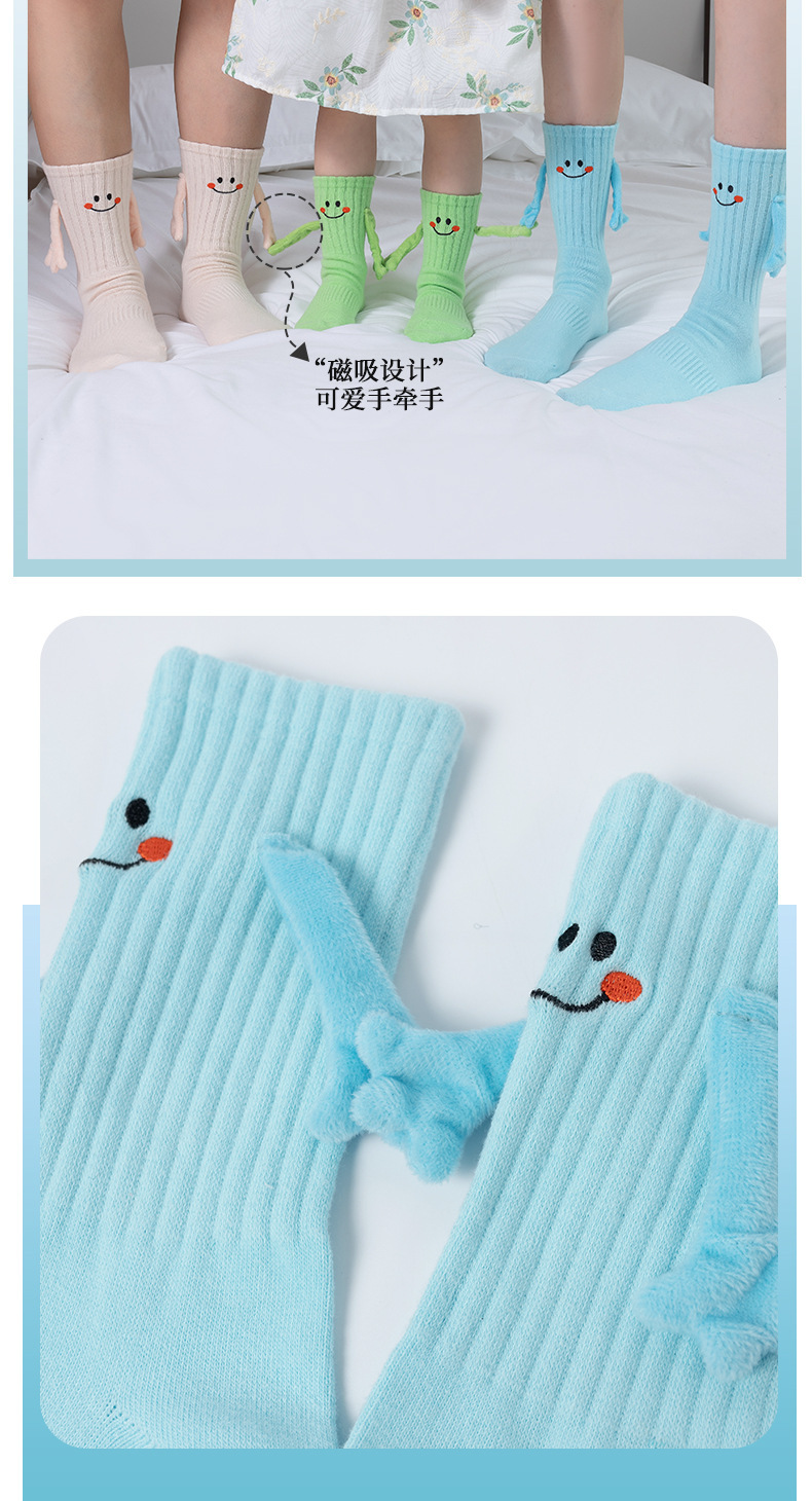 Hand Socks Magnetic Suction Baby Socks for Men and Women Cute Funny Smiling Face Color Internet Red Hand Socks