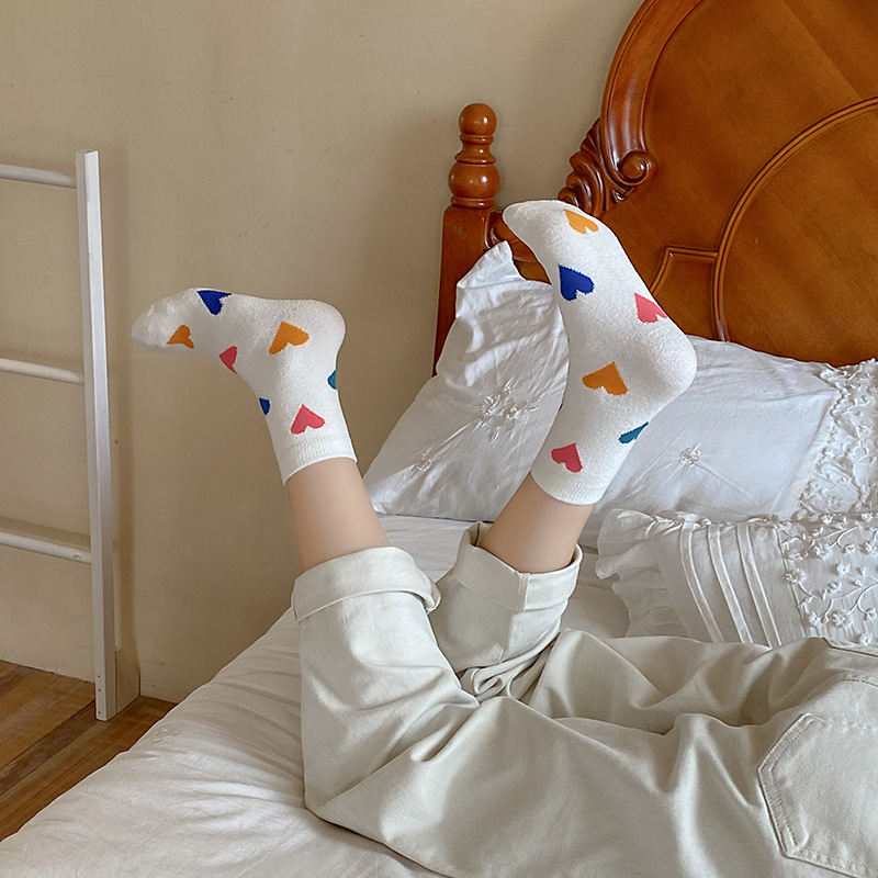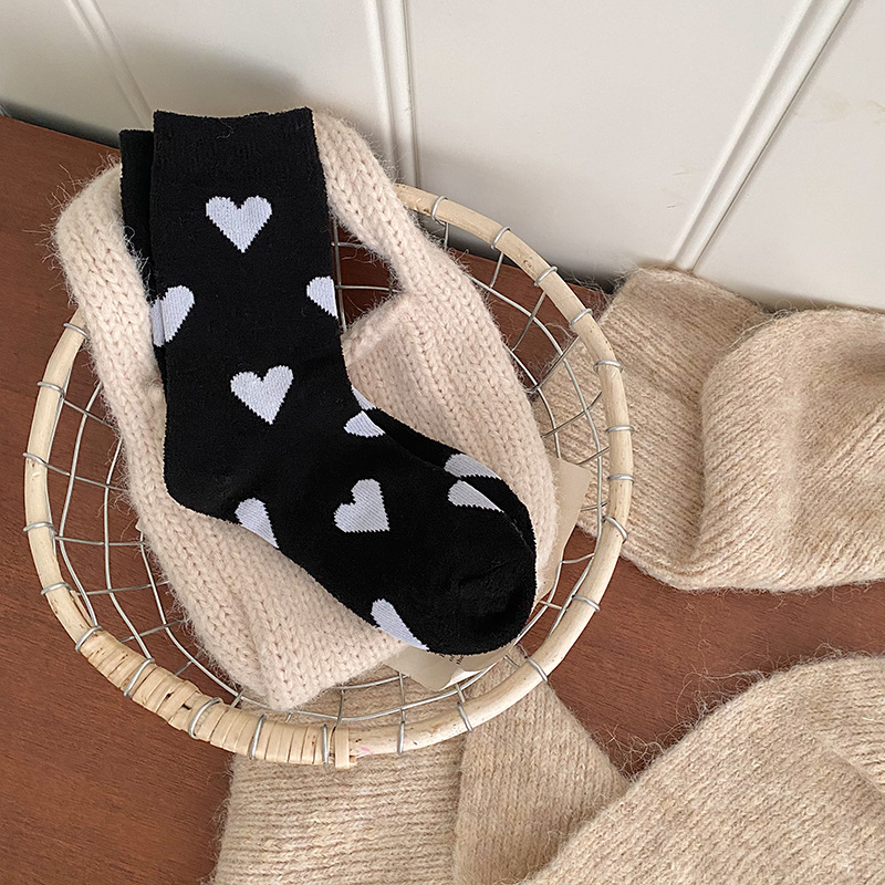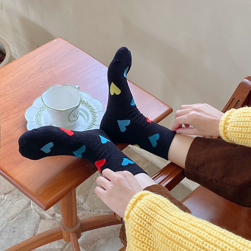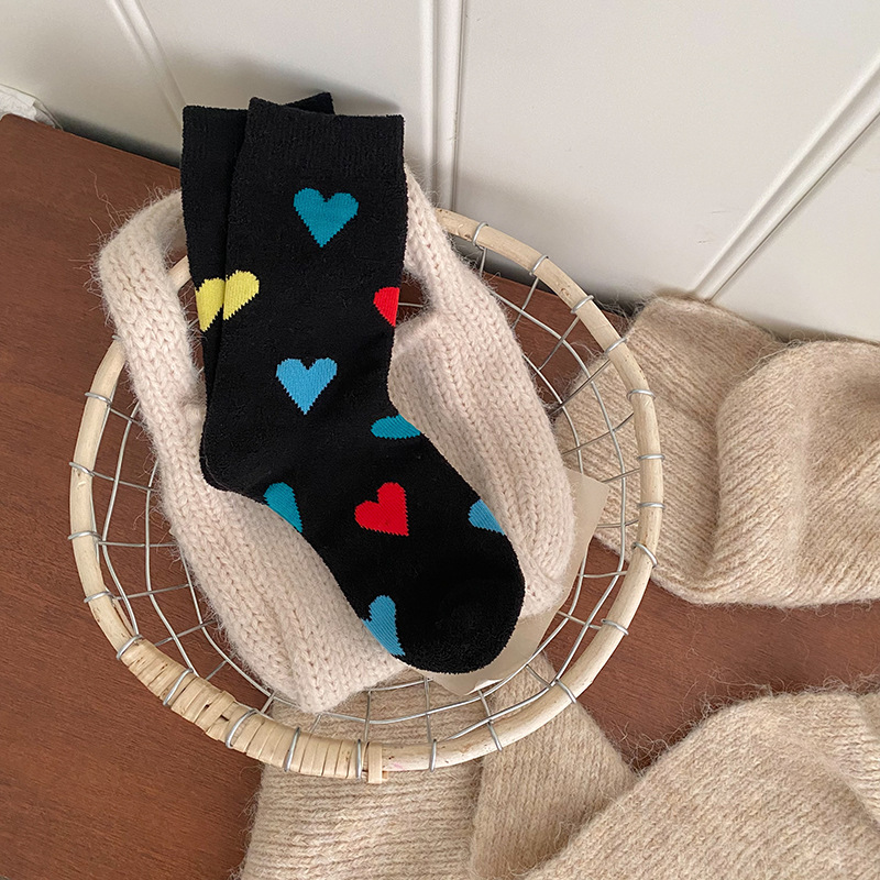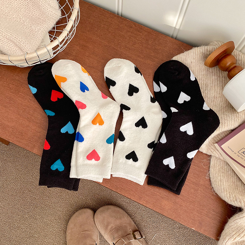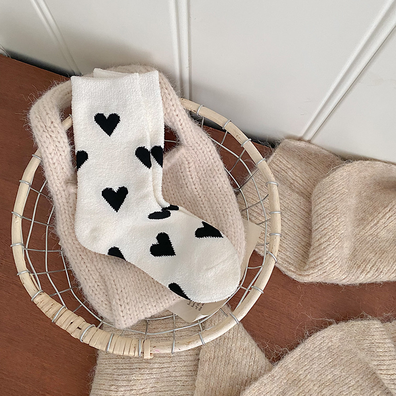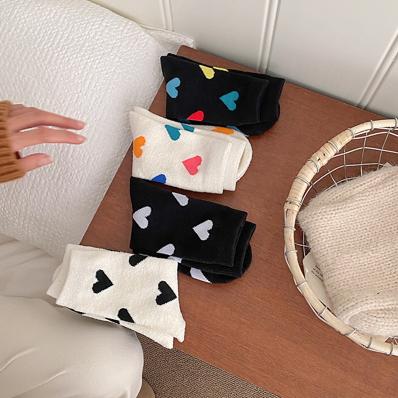 Socks women's autumn and winter new double-sided velvet warm tube socks fleece-lined thickened love tube socks European goods tide brand wholesale