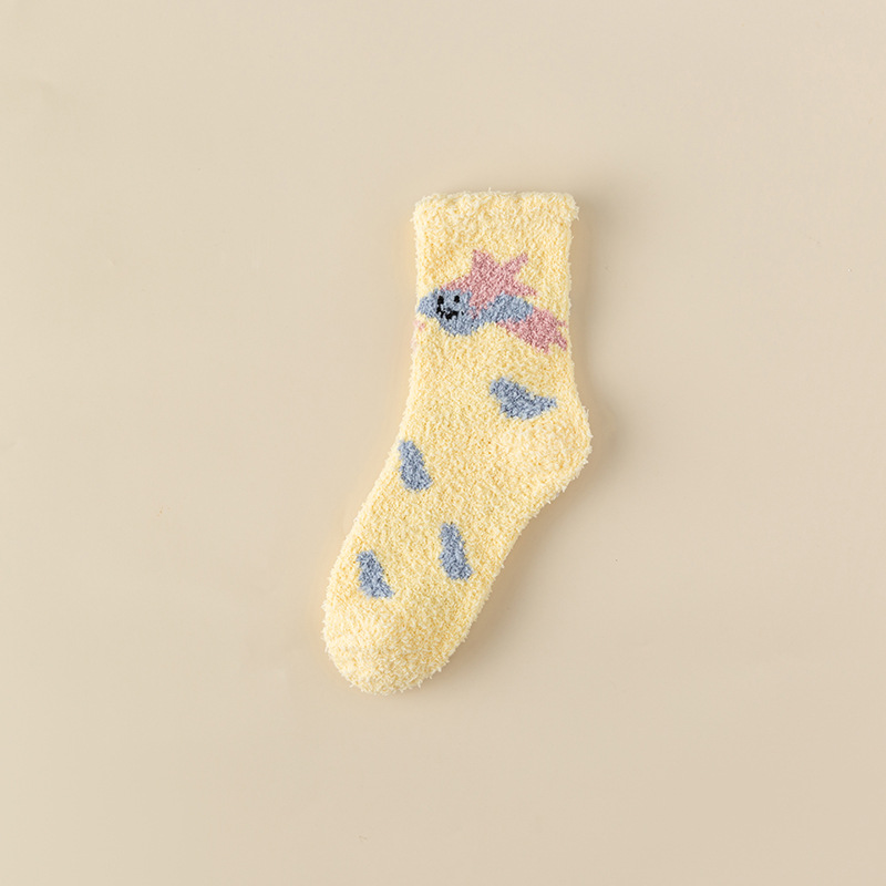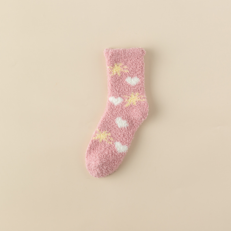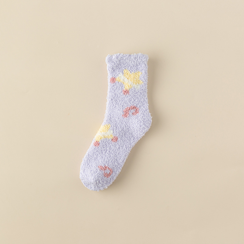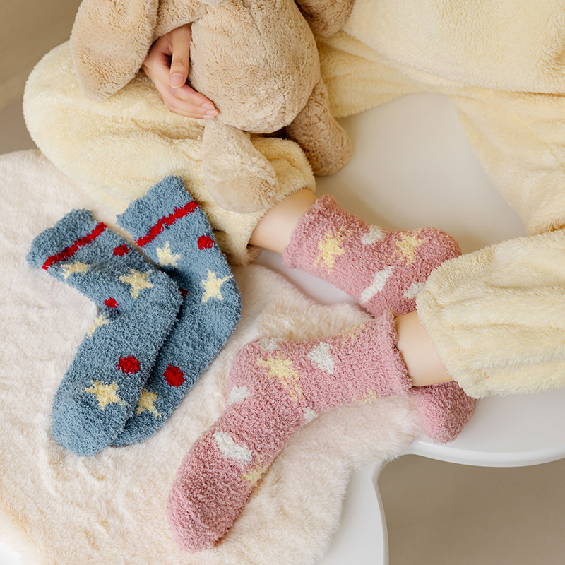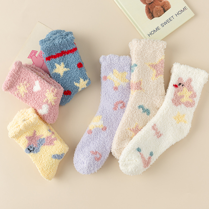 TikTok Explosions Thickened Coral Fleece Socks Autumn and Winter Sleep Socks Hair-free Home Stars Floor Socks Cute Cartoon