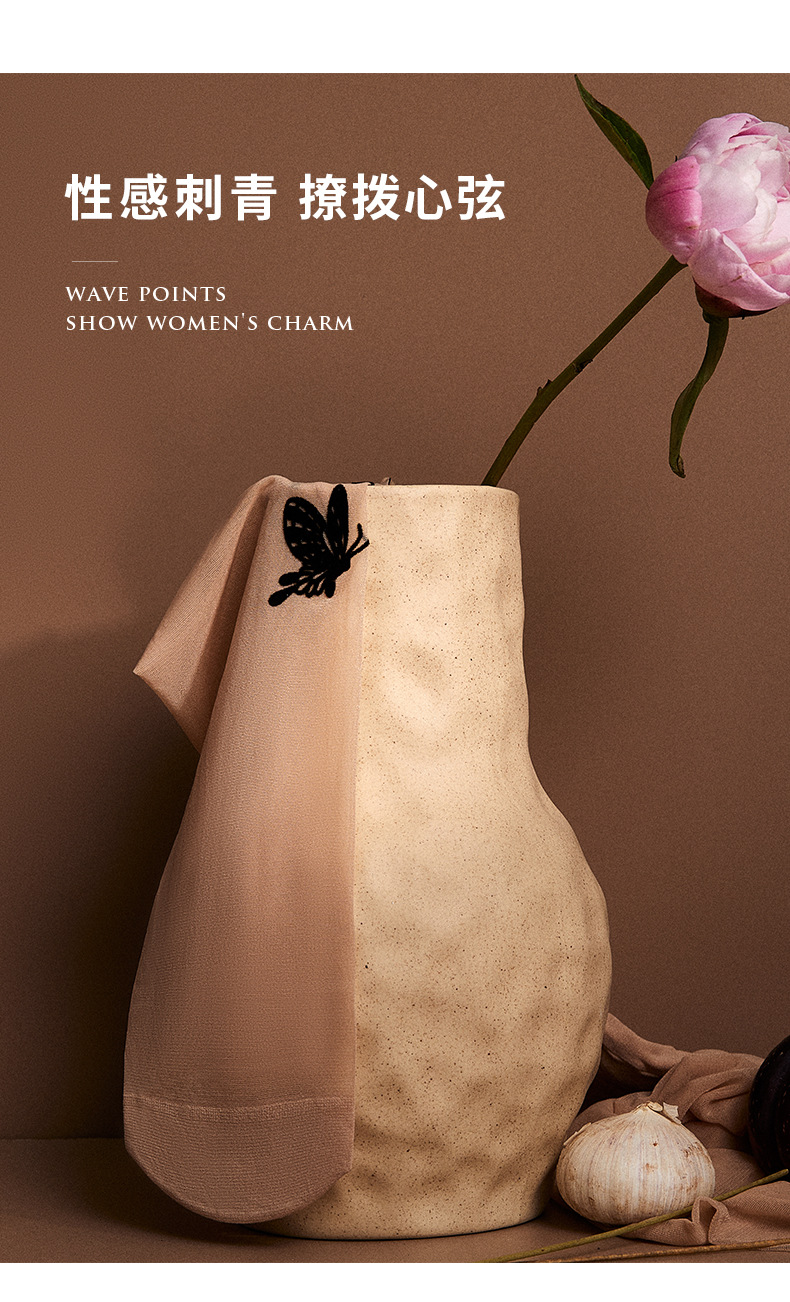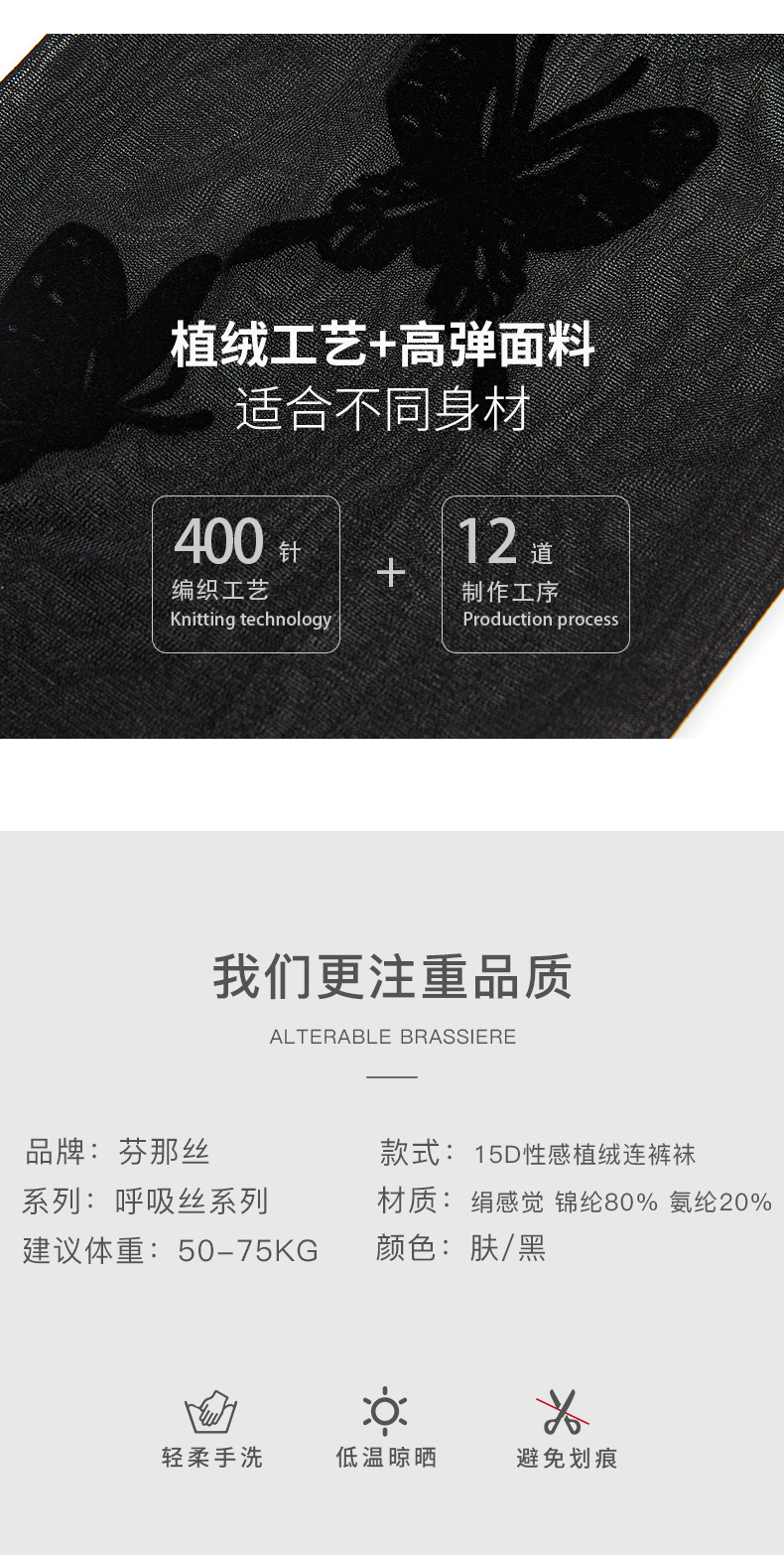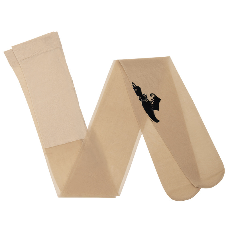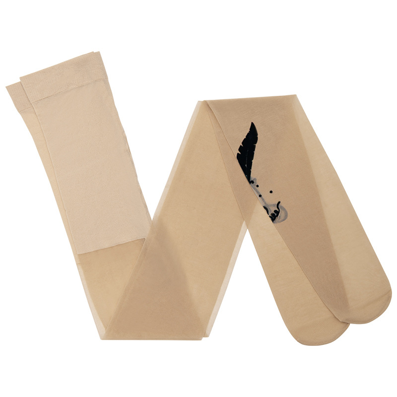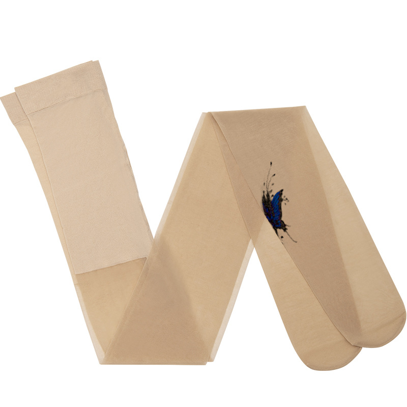Fenas Silk Printed Pantyhose Spring and Summer Thin Silk Stockings Women's 15D Core-spun Silk Butterfly's Language Flocking Pantyhose