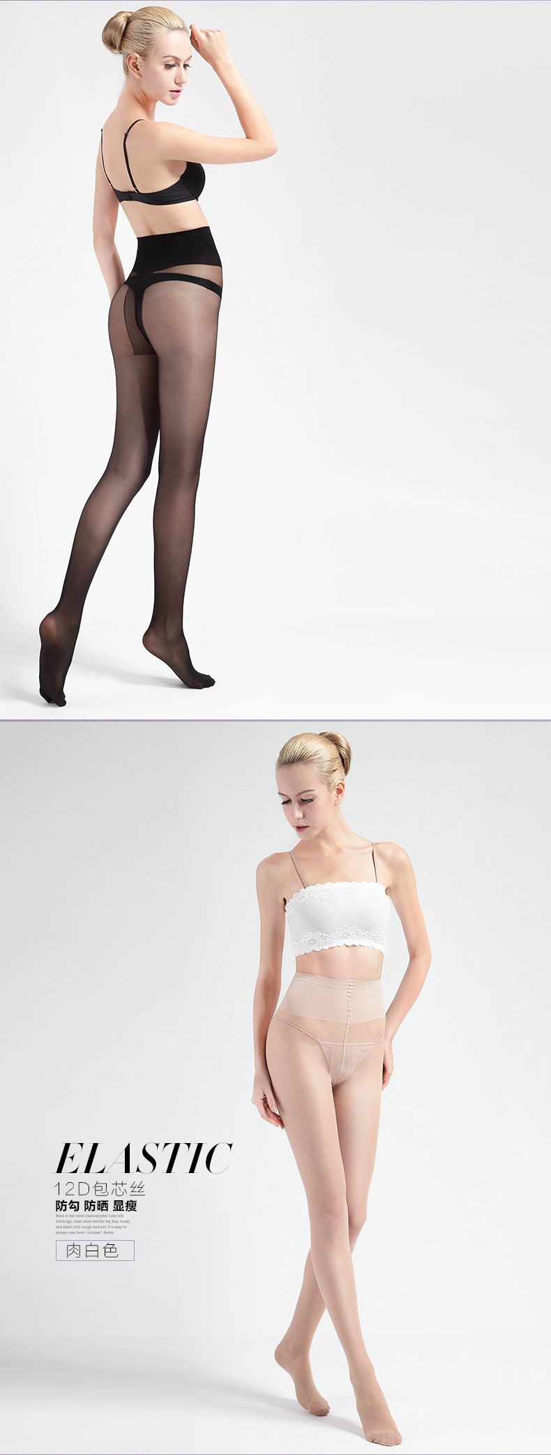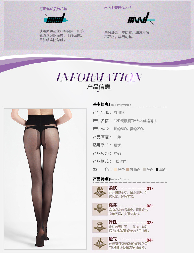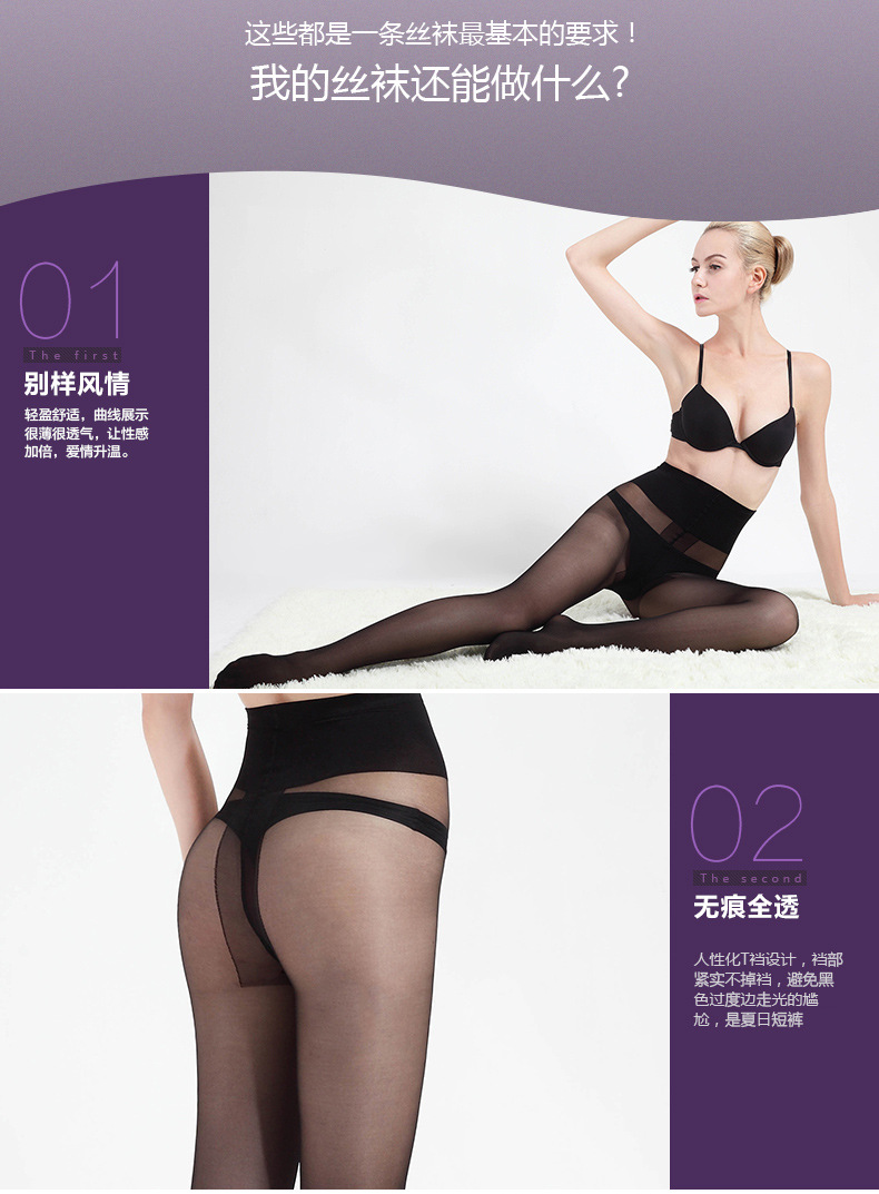 Fenas silk base socks anti-hook silk black silk spring and summer thin stockings women 12D super dense T crotch pantyhose manufacturers direct supply